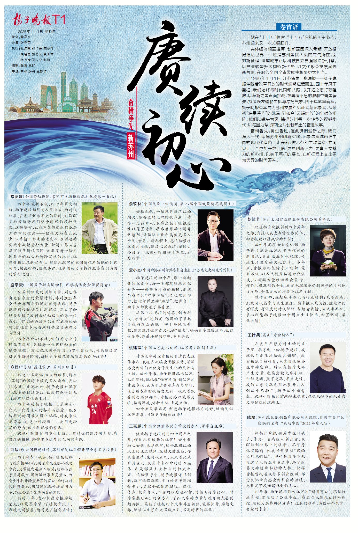 1986年1月1日,江苏省第一张晚报——扬子晚报伴随着改革开放的时代浪潮应运而生。四十年风雨兼程,我们始终与时代同频共振,以开拓之志打破疆界,以革新之勇直面挑战,在奔涌不息的浪潮中奋勇争先,持续焕发蓬勃生机与昂扬气象。四十年笔墨春秋,扬子晚报有幸成为苏州发展的见证者与记录者。从最初“油墨芬芳”的纸端,到如今“云端绽放”的全媒体矩阵,我们以镜头为窗,捕捉苏州每一次转型的铿锵步伐;以笔墨为犁,深耕这片创新热土的奋进故事。