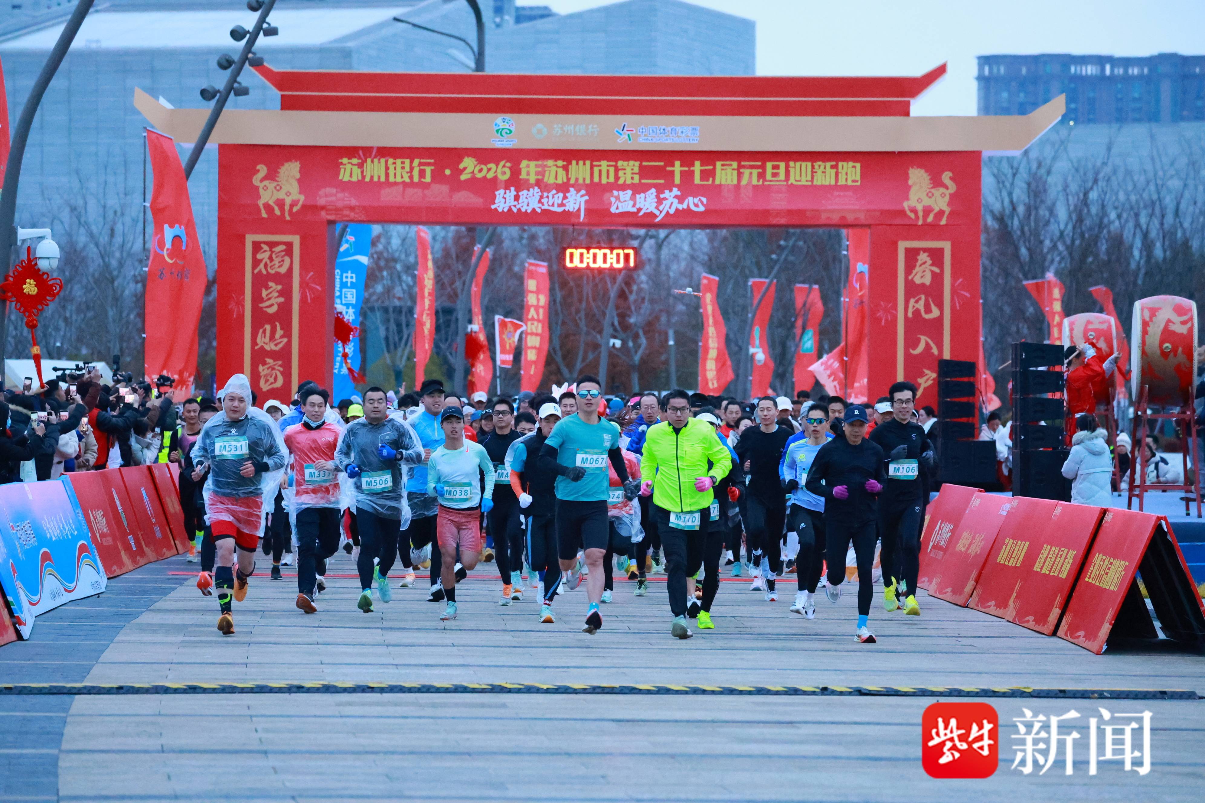 1月1日,2026年苏州市第二十七届元旦迎新跑在苏州高新区狮山文化广场鸣枪起跑,2026名苏州市民以运动的方式表达美好祈愿,以骐骥之姿奔跑迎接新一年征程。