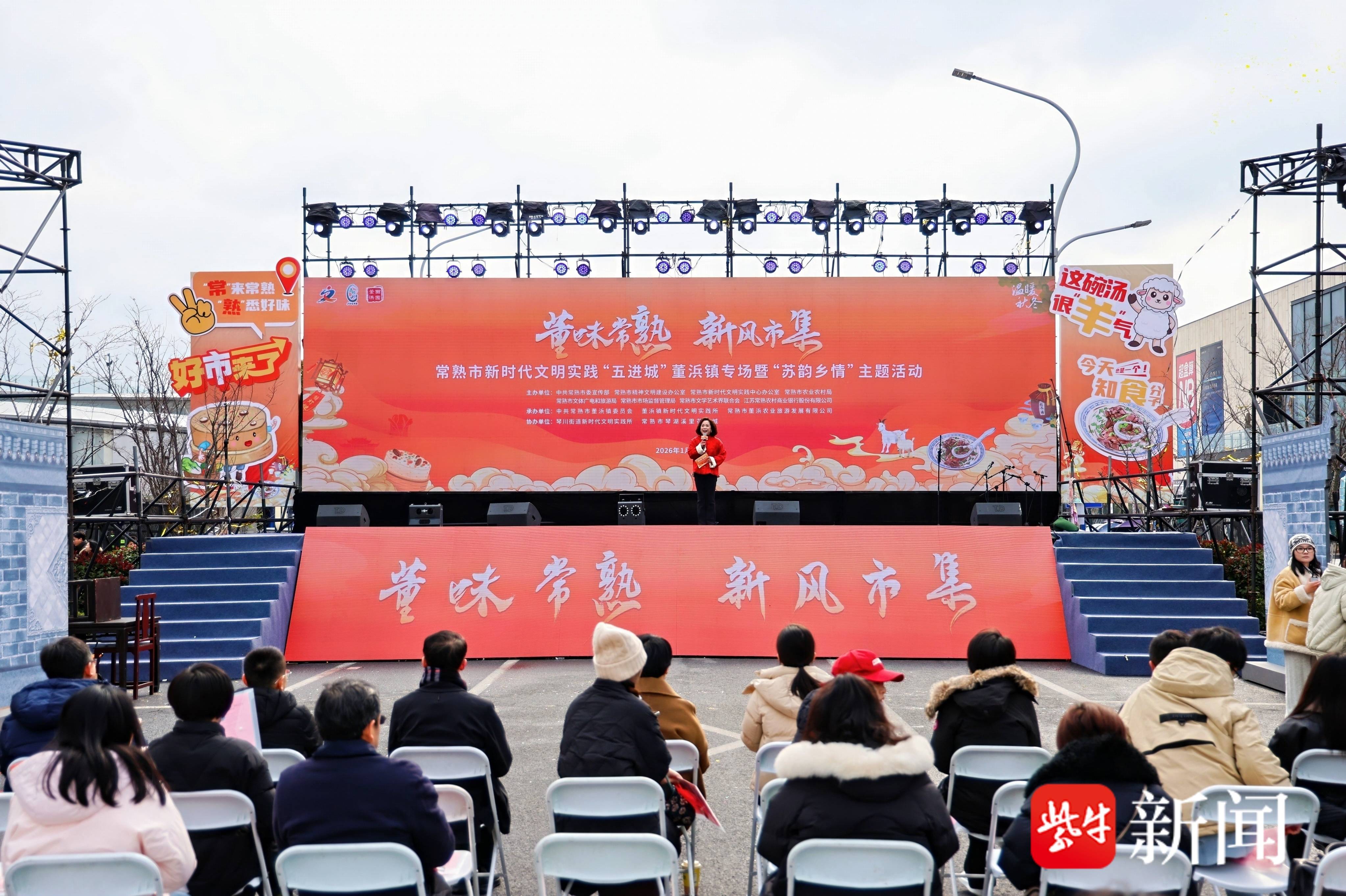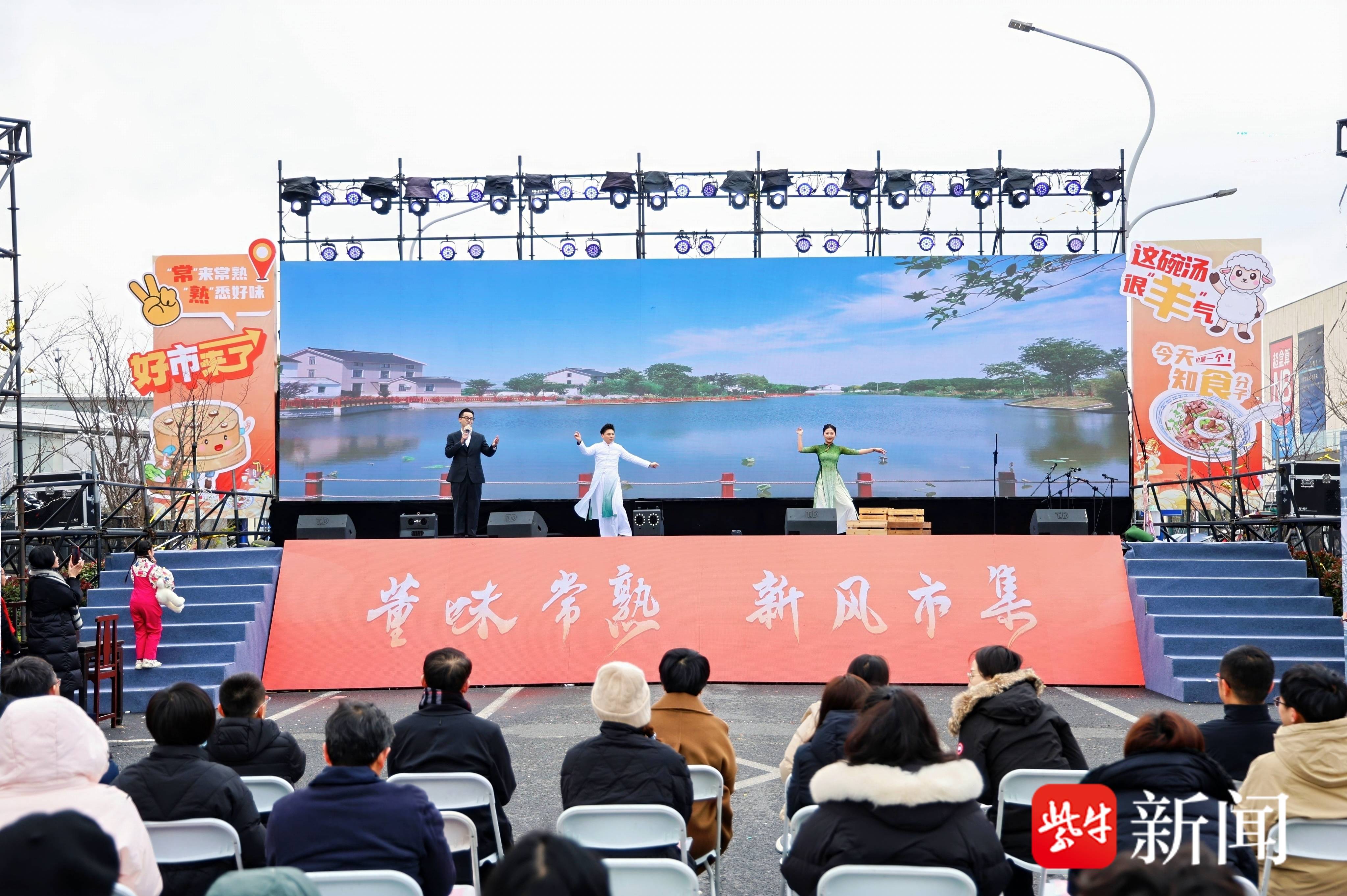 当天,“董味常熟 新风市集”常熟市新时代文明实践“五进城”董浜镇专场暨“苏韵乡情”主题活动在这里举行。寒意之中,一场来自乡村的风味、市集与演出,让不少市民在新年的第一天感受到别样的热乎气。
