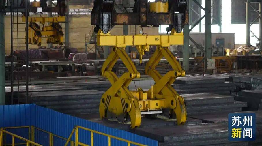 在张家港沙钢的宽厚板二车间,无人行车自动抓取板坯,火红的钢块自动出炉,产线上几乎不见工人身影,而是在控制室内,通过电脑屏幕进行操控。