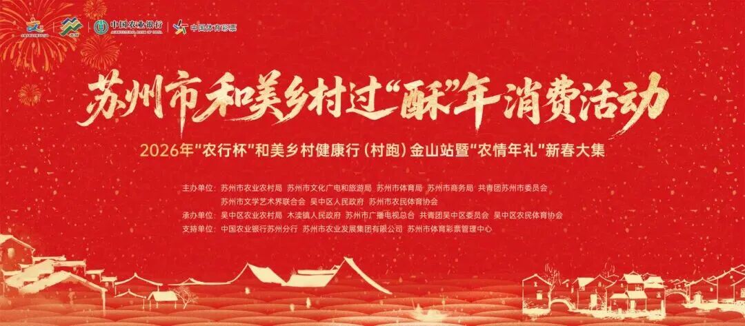 1月17日,苏州市和美乡村过“酥”年消费活动2026年“农行杯”和美乡村健康行(村跑)金山站暨“农情年礼”新春大集将火热开幕!这场融合了民俗、运动、市集的新春盛宴,邀您一起跑进和美乡村,解锁农文旅融合新体验“品特产、寻年味”。