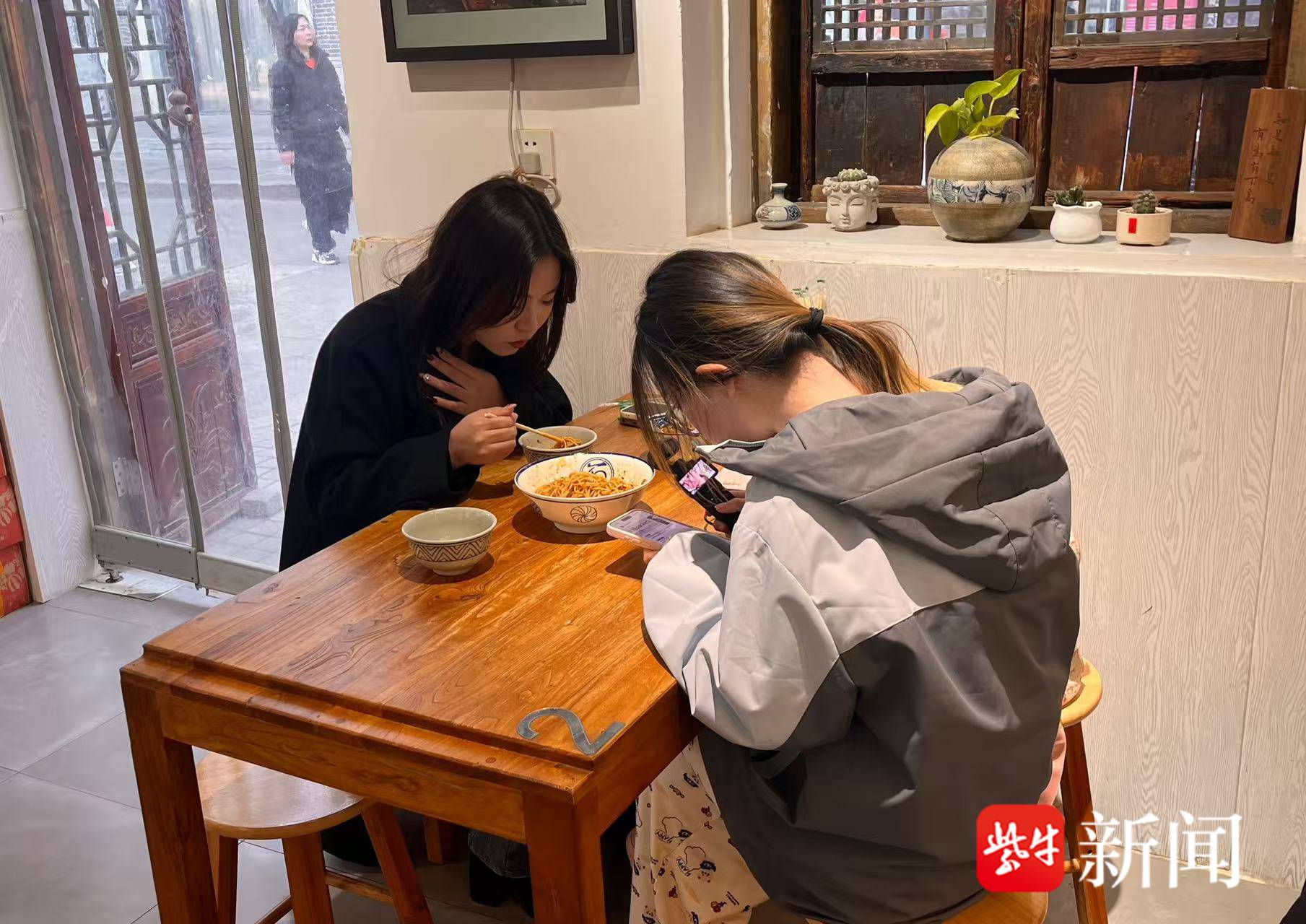 扬子晚报/紫牛新闻记者推门而入,铜质铃铛“叮铃”轻响,云南风情的竹编装饰和墙上版纳风味的挂布映入眼帘。操作台后,阿木舂记·特色小吃店店主陈老板手持长筷快速拌面,汗湿的刘海贴在前额,一碗刚递出,新订单的提示音又响起。“以前只有饭点忙,现在从早上10点开门就没歇过,脚不沾地成了常态!”她一边擦手一边笑,“客流翻了一番,基本从早到晚座无虚席,七成顾客是冲着热播剧《骄阳似我》来的,很多年轻姑娘拖着行李箱就找过来了。”