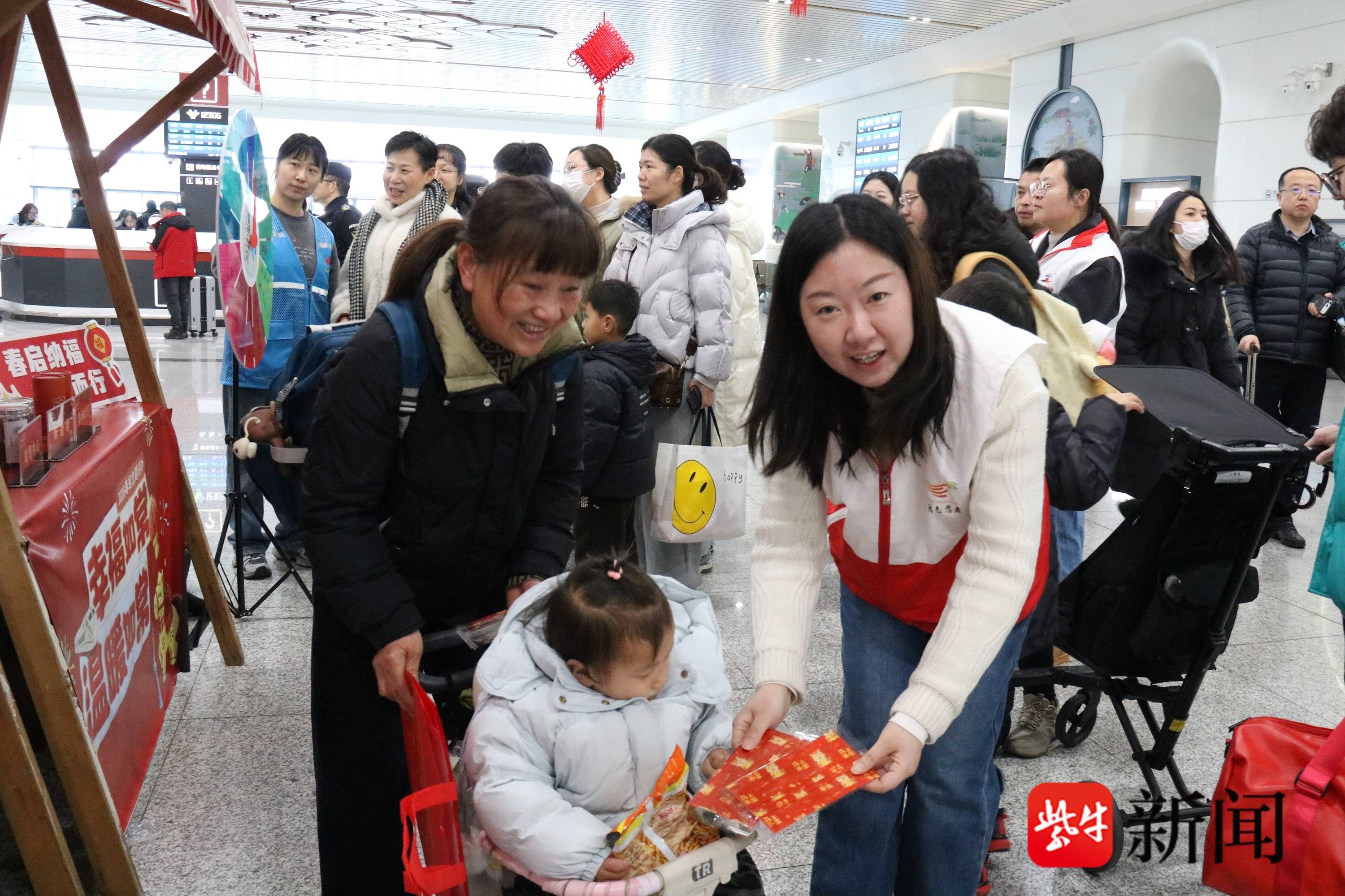春运首日,站管中心积极参与市委宣传部主办、融媒体中心承办的常熟站春运主题活动,为过往旅客送上新年口罩、便携纸巾、便携指甲、暖心姜茶等春运伴手礼,把新春的美好祝福,连同满满的关怀,一并送到旅客手中。