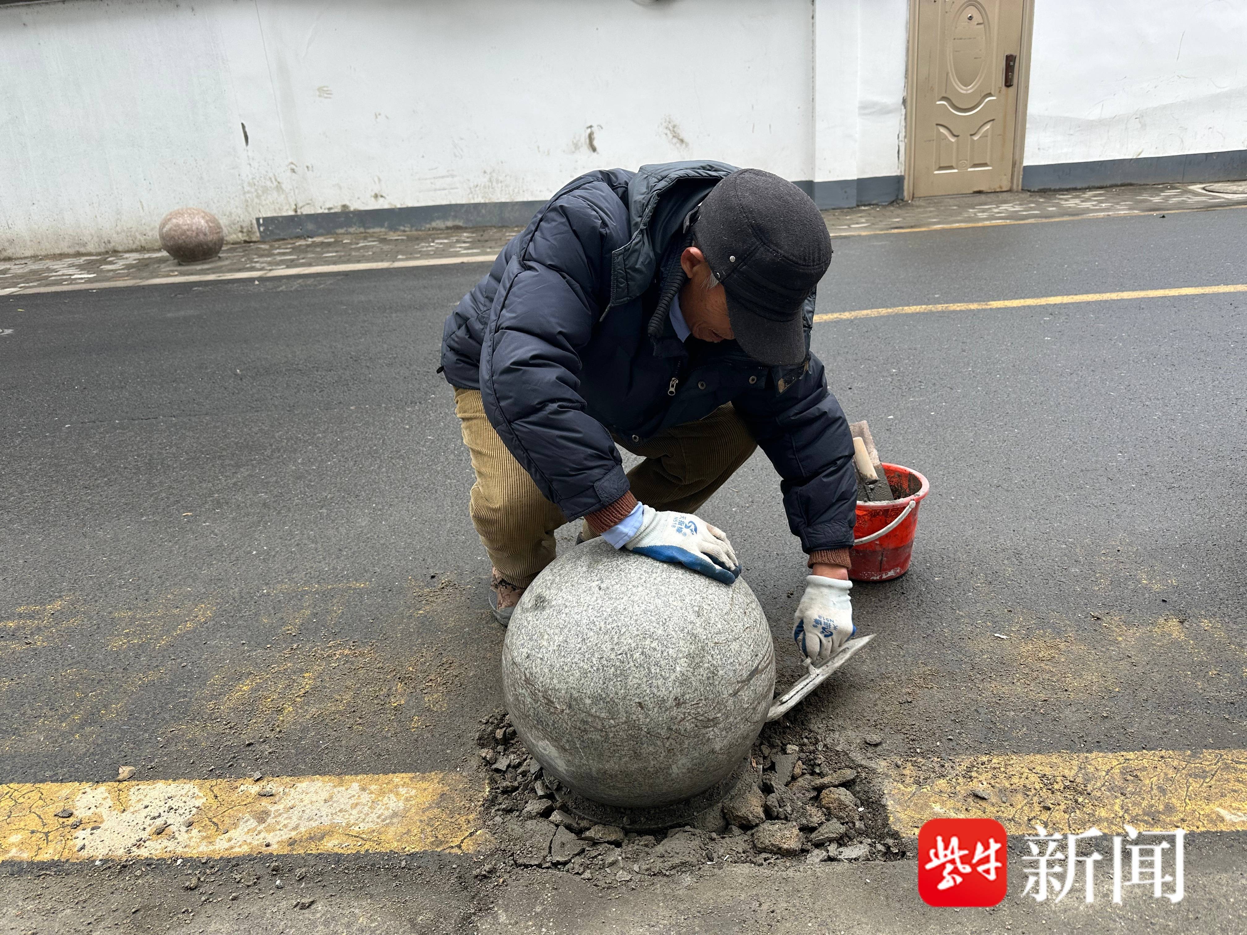 近日,苏州市姑苏区沧浪街道潼泾一社区的网格员许阿姨在日常巡查时注意到,辖区内一处用于分隔人行道与车行区域的石球发生了破损,且明显移位,不仅影响了道路美观,更给居民的通行带来了不便与安全隐患。
