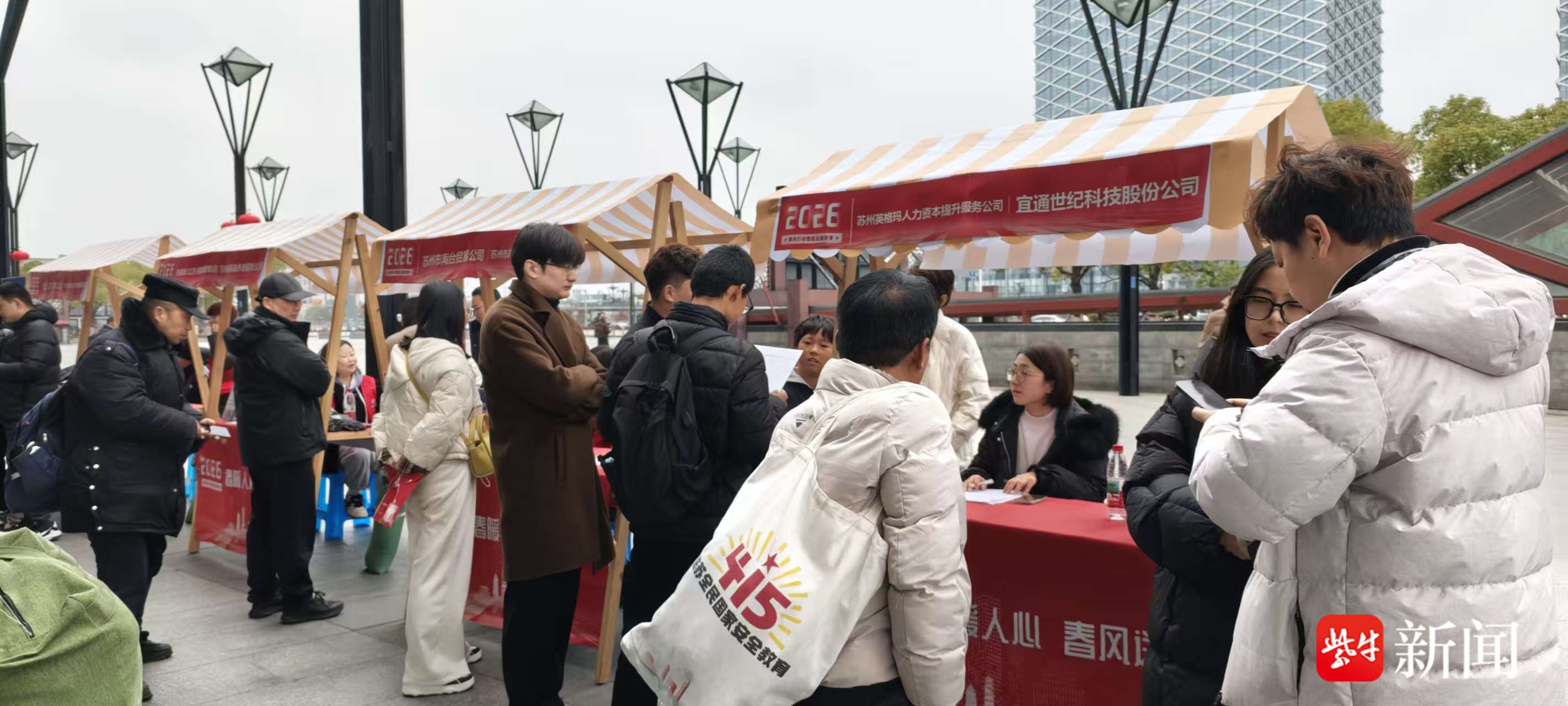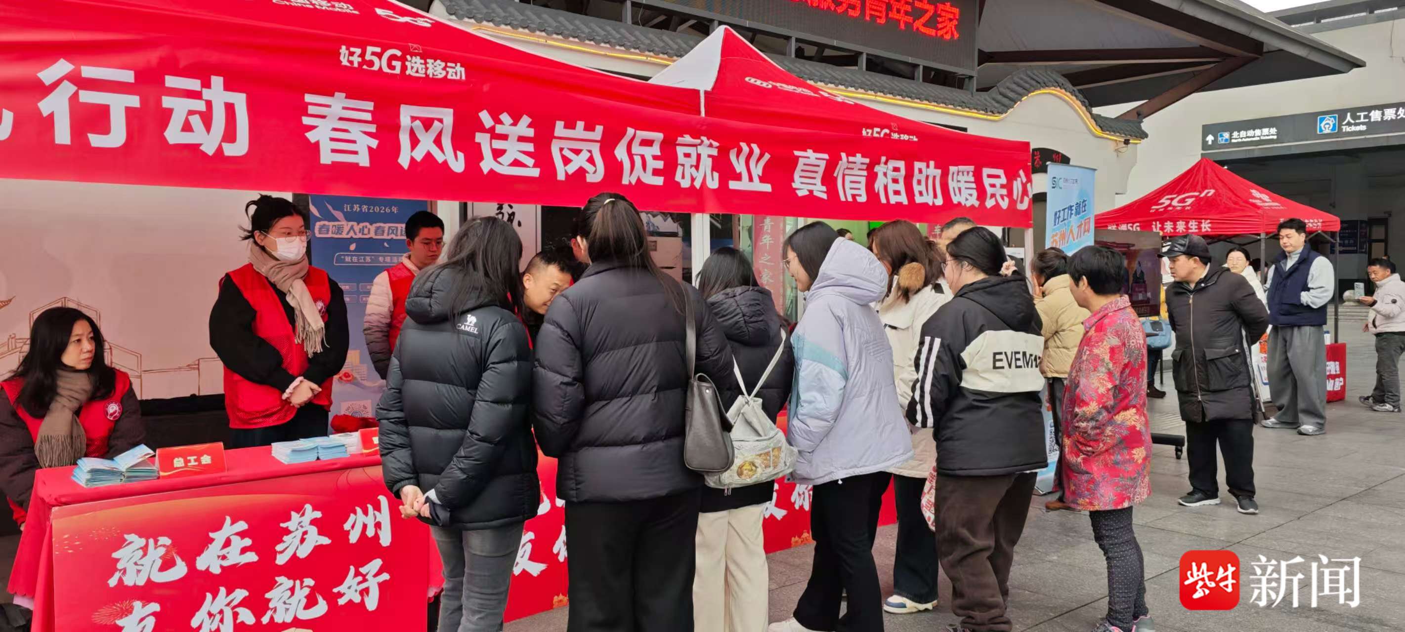 春潮涌动,就业正当时。为深入贯彻市、区稳就业、保民生决策部署,全力保障节后企业用工和劳动者求职需求,3月3日,苏州市姑苏区苏锦街道联合姑苏区人社局在苏州火车站北广场启动“春风送岗促就业 真情相助暖民心”主题活动,通过“政策咨询+现场招聘+云端带岗+职业指导”四位一体服务,为返苏务工人员和辖区企业搭建精准对接平台,让就业春风“吹暖”每一段归途与启程。