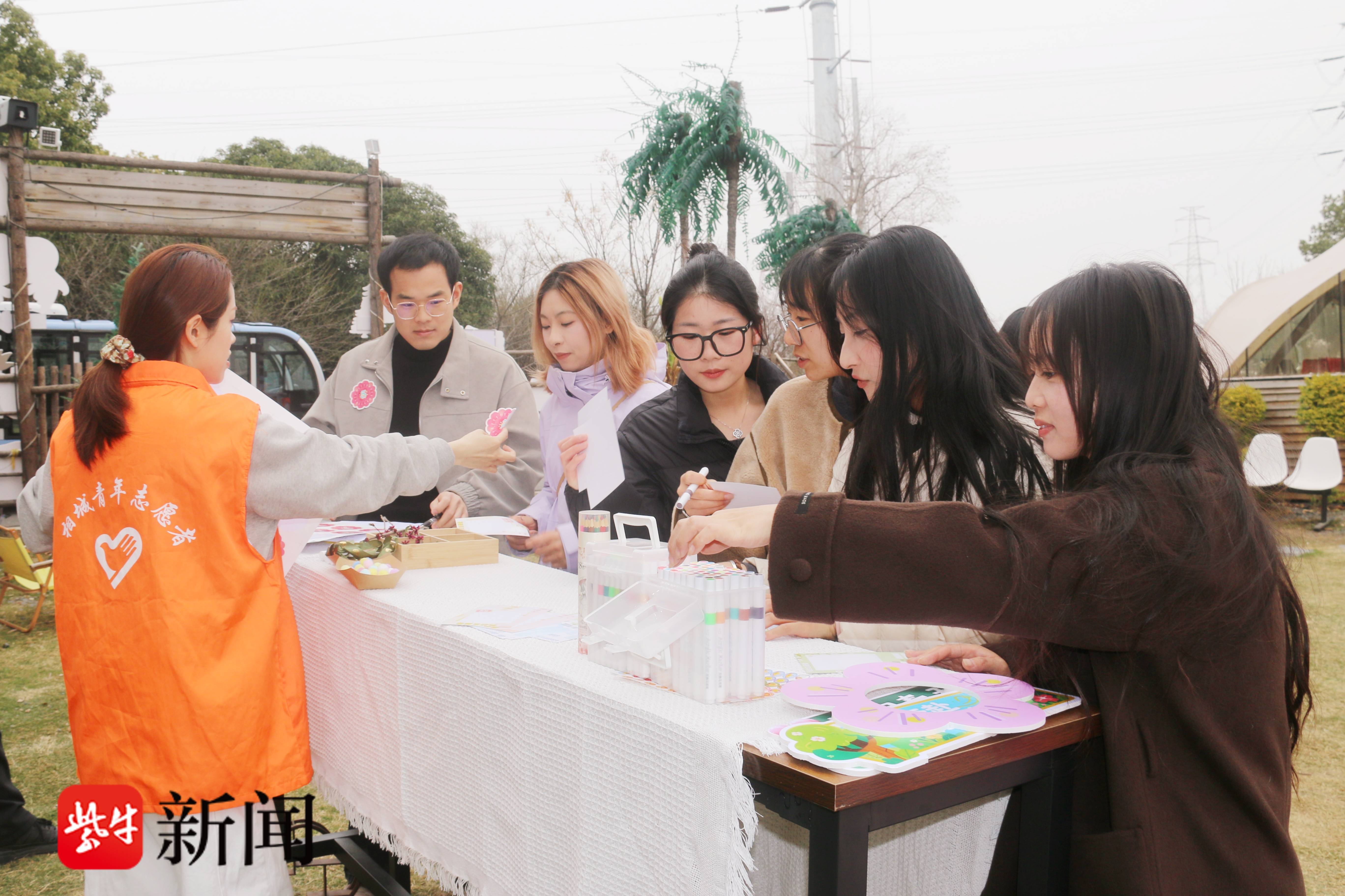 黄桥梅花园里春意盎然,现场特别设置的“i人/e人接头区”成为青年们的“社交新阵地”。在破冰环节,大家手绘自画像,设计独特的个性标签与心愿信封,在沉浸式创作中打破隔阂。