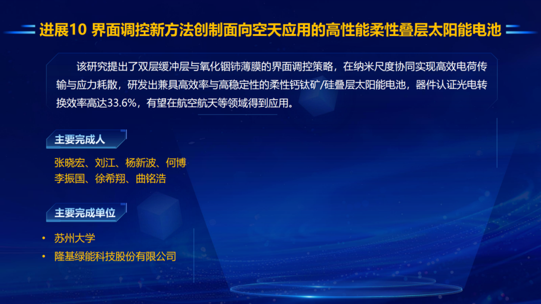 界面调控新方法创制面向空天应用的高性能柔性叠层太阳能电池
