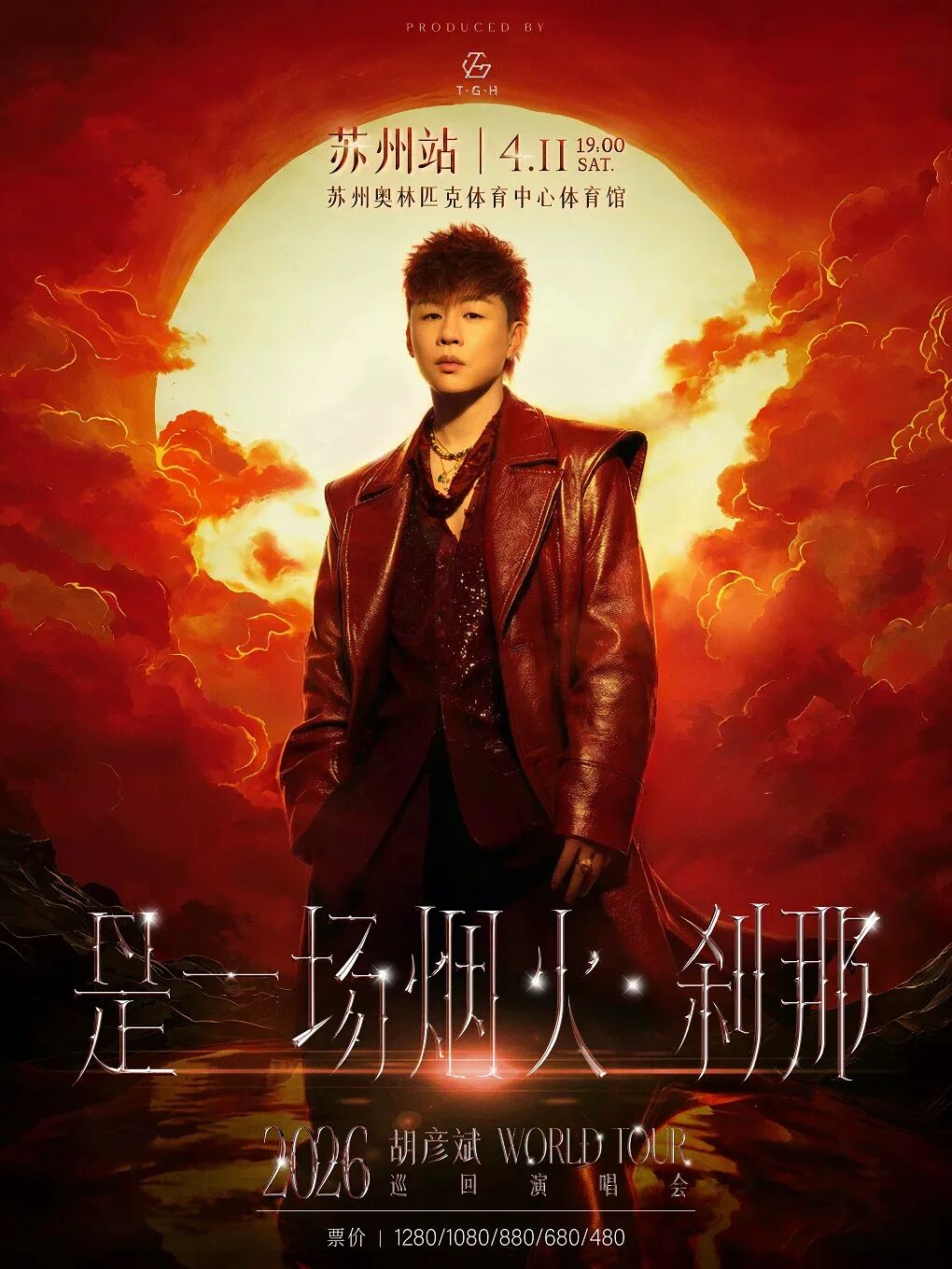 4月11日,胡彦斌2026「是一场烟火刹那」巡回演唱会苏州站在苏州奥体中心体育馆举办。