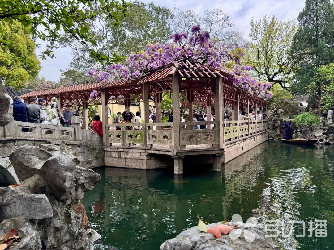 近日,随着气温回暖,苏州多座古典园林内的紫藤花进入盛放期。在狮子林、拙政园、沧浪亭等名园中,串串紫藤垂挂枝头,与嶙峋山石、玲珑花窗相映成趣,吸引众多游客驻足观赏打卡。