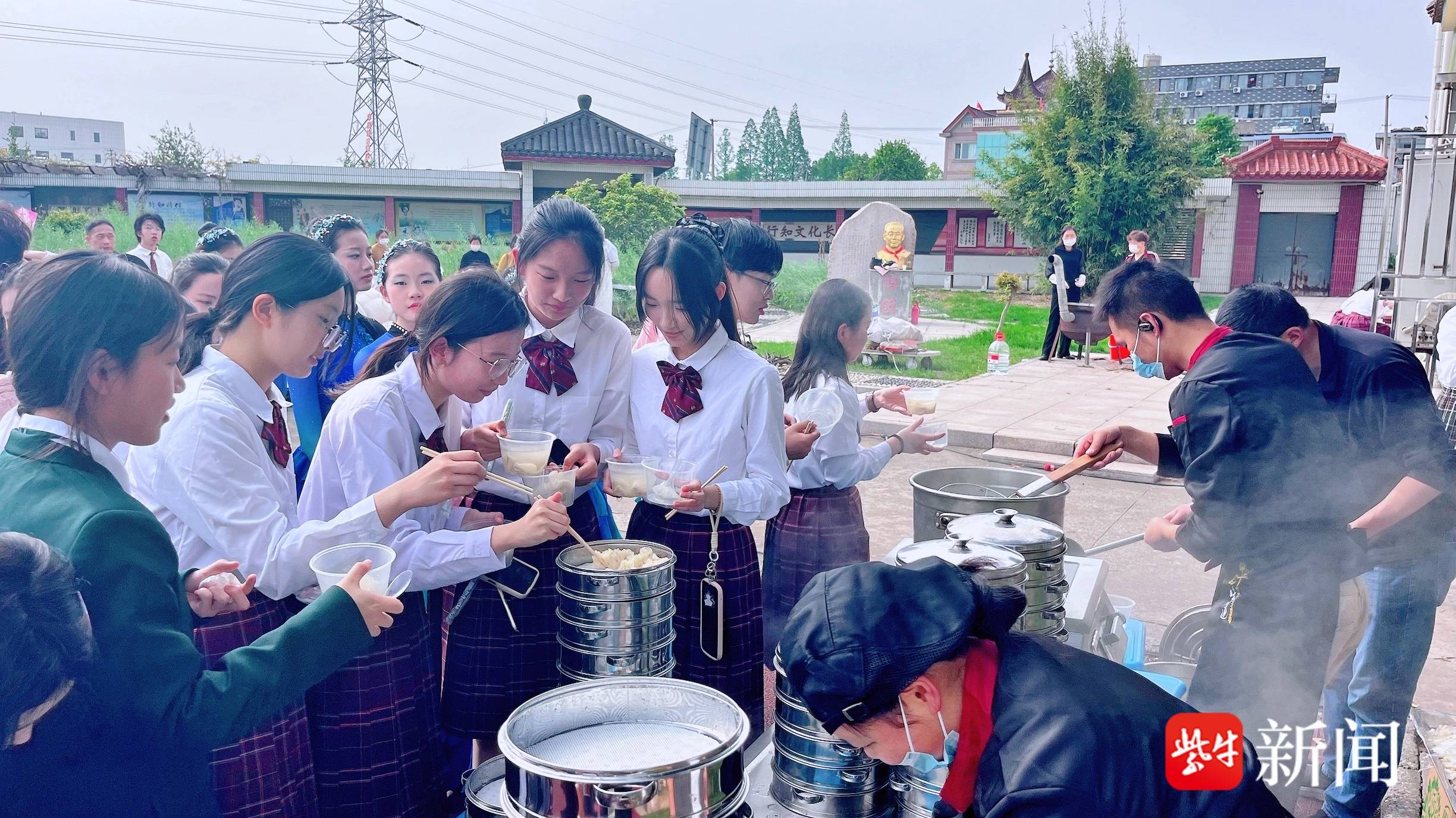 艺术展演结束后,趣味实践环节暖心开启。烧野火饭、制作烧卖、手工做青团等活动同步开展,学生们围坐在一起,分工协作、动手体验,欢声笑语回荡在校园的每个角落。学生李柏乐兴奋地说:“能和苏州六中的哥哥姐姐一起表演、做野火饭,我特别开心!这次活动既有趣又难忘,我收获了快乐和友谊,也感受到了艺术的美好。”