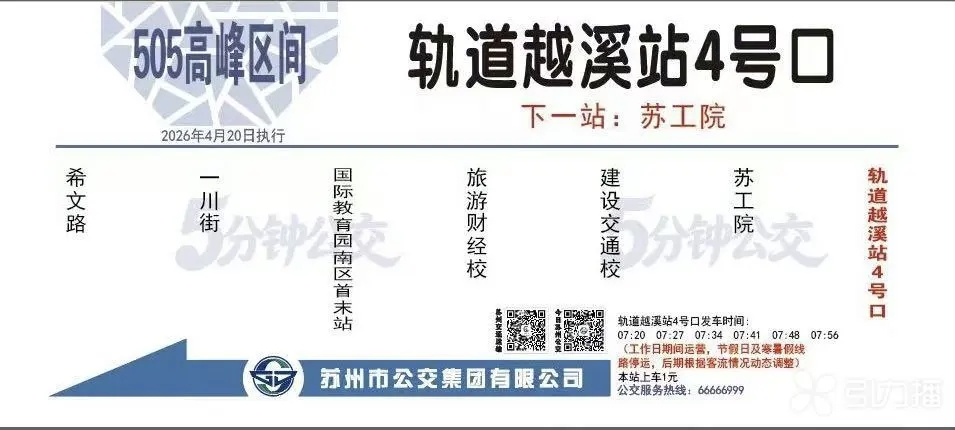 地铁出站步行<5分钟、站间乘车平均≈5分钟、线路全程<5公里、高峰班次与地铁同频发车、就连线路番号都藏着两个“5”……4月20日起,苏州公交集团将推出首条“5分钟公交线路”——505路高峰区间,专为国际教育园片区师生打造,用五个“5”的精密设计,重新定义“最后一公里”接驳的精细化出行。