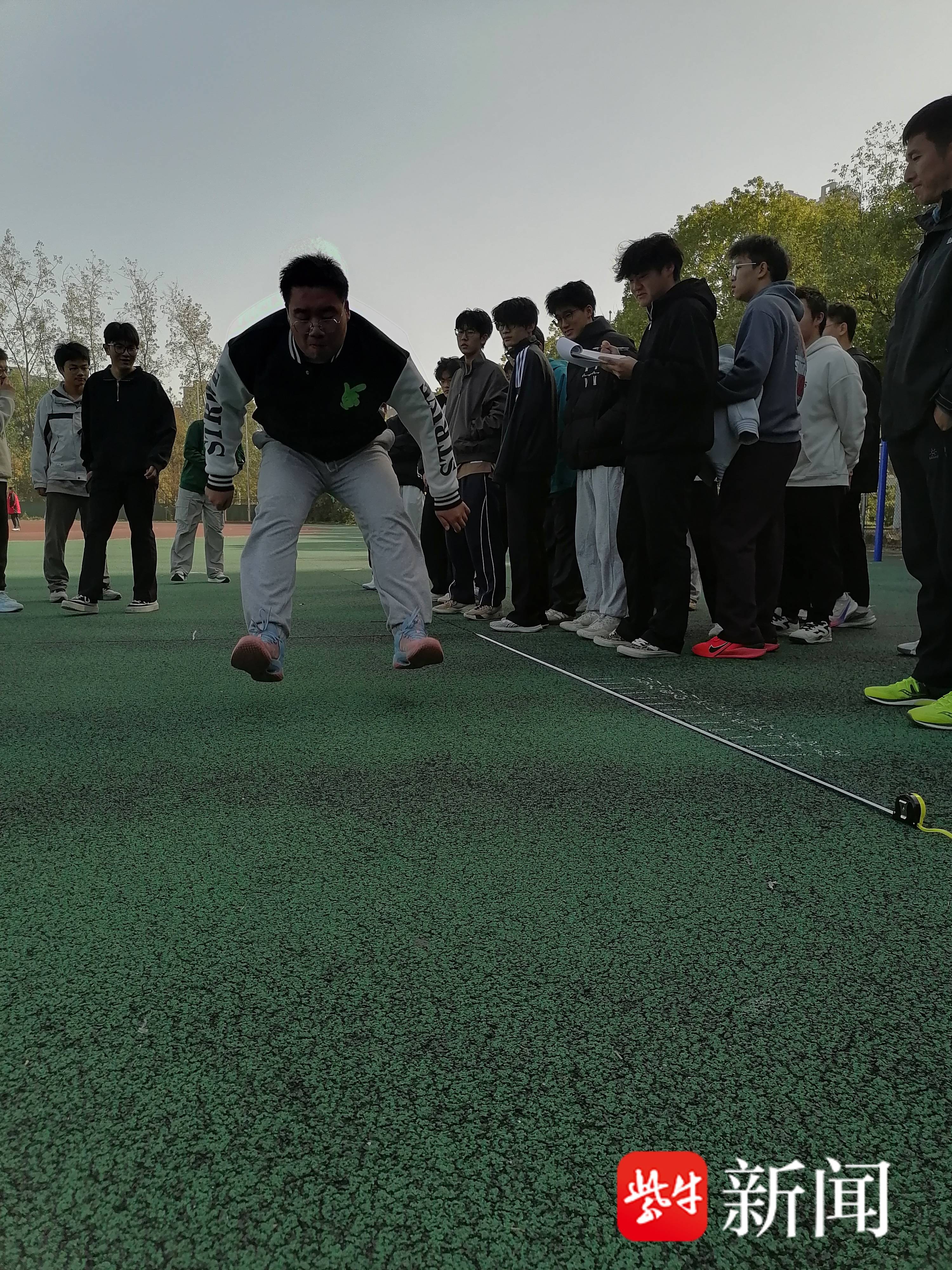 当然,学生依然是这场校运会的主角。在为期一天的比赛中,他们参与了男女100米、400米、800米跑、接力跑等径赛以及跳高、跳远、实心球等田赛项目,在同学和老师、家长的呐喊声中,年轻的男生女生奋力奔跑,哪怕落后也坚持到底。与此同时,学校老师也参与了拔河、8字长绳、两人三足等比赛,相对学生赛项的专业性,老师们的赛事组别更像是为学生们“助兴”。比如趣味运球项目,一众老师手持球拍端着乒乓球疾速奔向终点,因为风大球老是掉落,还有老师因为太急摔了下,现场观众们笑着鼓励,充满了欢乐。“这样也行,太‘水’了,哈哈哈!”