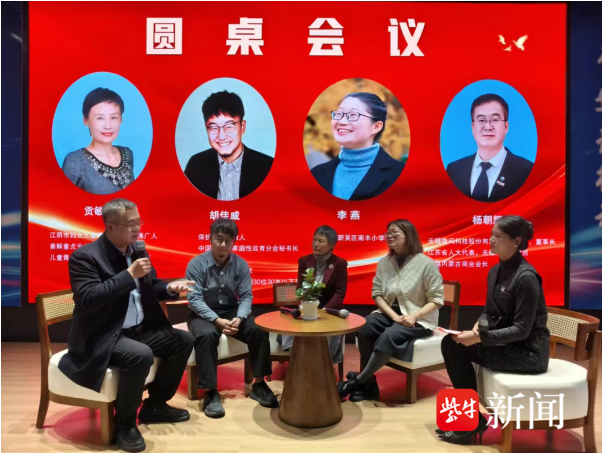 圆桌论坛环节,专家代表贡敏华、胡佳威,教师代表无锡市新吴区南丰小学校长李燕,以及家长代表、江苏省人大代表、向日葵公益理事长杨朝辉先生,围绕“看见、理解、守护”三个关键词就推动儿童性教育工作展开对话。