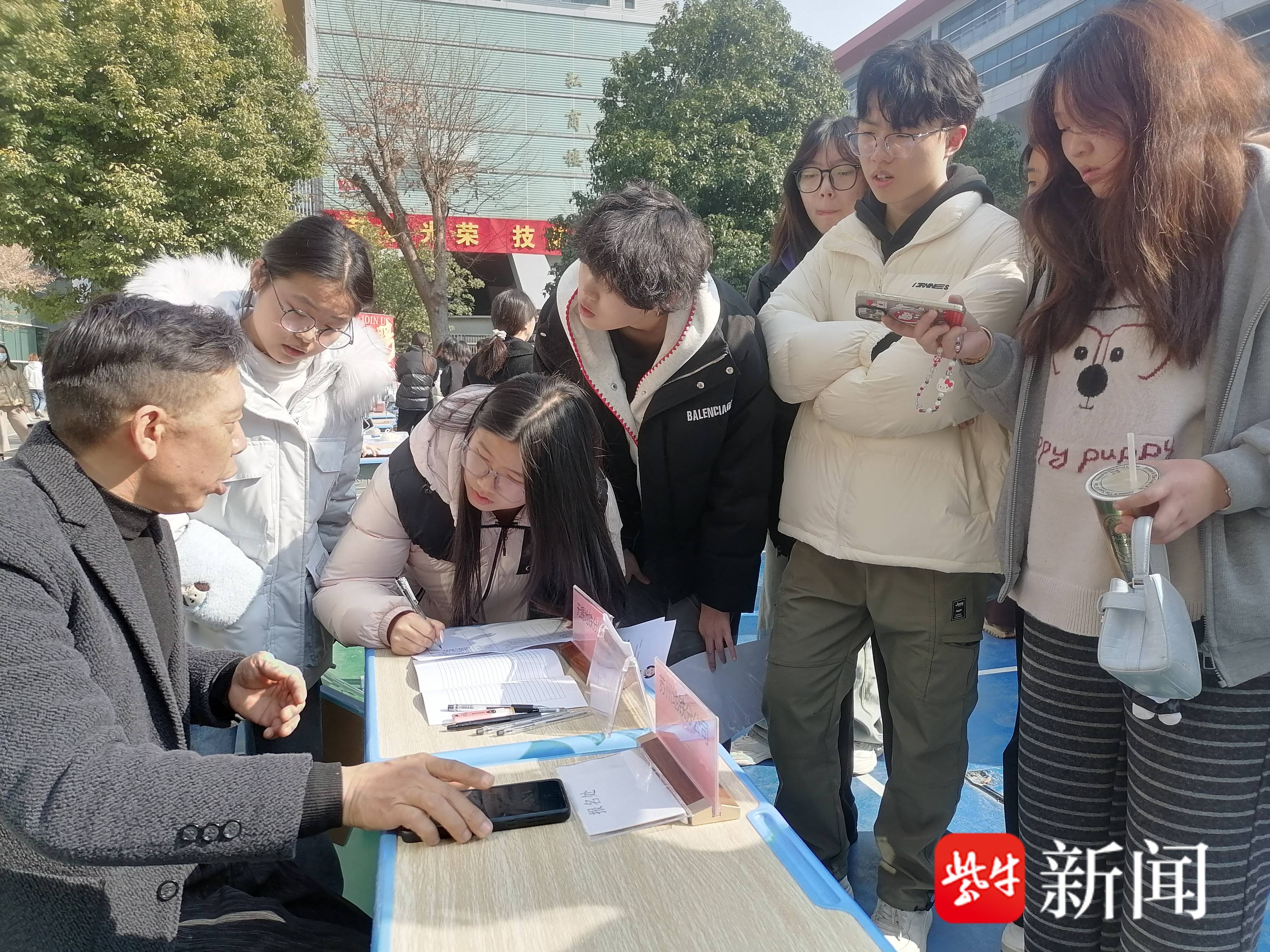 “有纹身的不要,然后我们提供实习工资,免费吃住!”现场,无锡地铁招聘摊位前聚集了不少的学生,18岁的张浩毅是其中之一,其就读于无锡金茂商校的航空服务专业,今年暑期即将毕业,他与好几个同学都做了实习登记,期待后续有机会在无锡地铁相关站点做票检、引导或安检等工作。他觉得,这个岗位和自己学习的专业相近,希望通过实习积累经验。“我还会考高职,但这样的实践经验很难得,我期待未来向专业技术岗位去发展!”