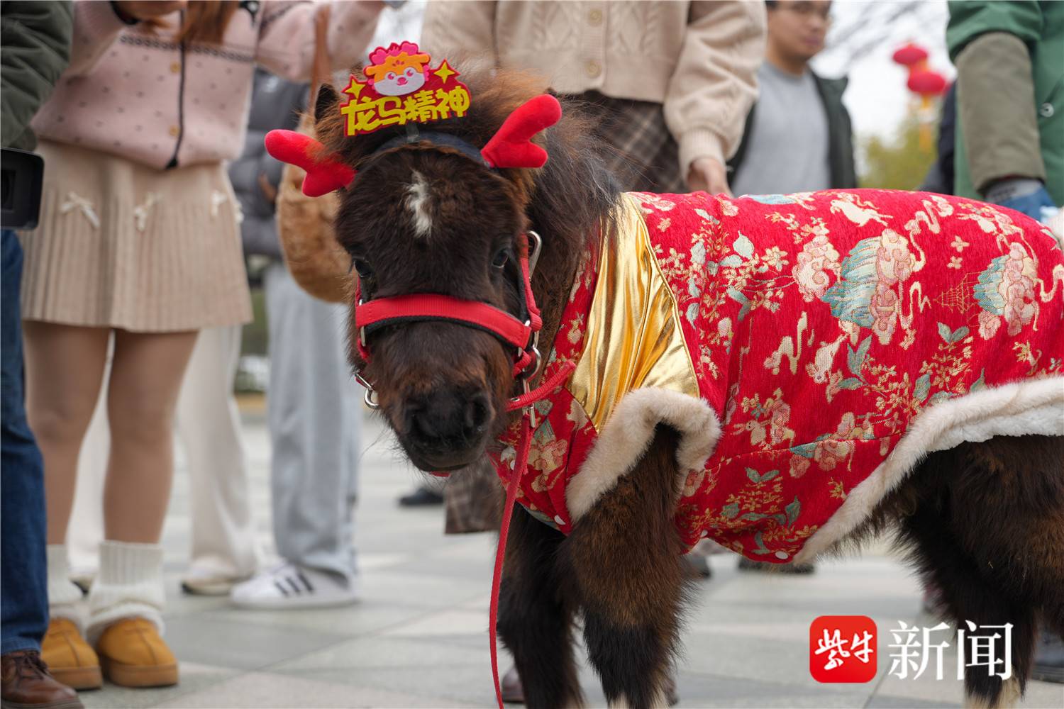 园区精选2匹性格温顺、外形可爱的矮马母子,搭配马年主题装饰,开展“萌驹寻福”矮马快闪巡游活动。参与巡游的矮马宝宝将身着喜庆大花袄,萌态十足。