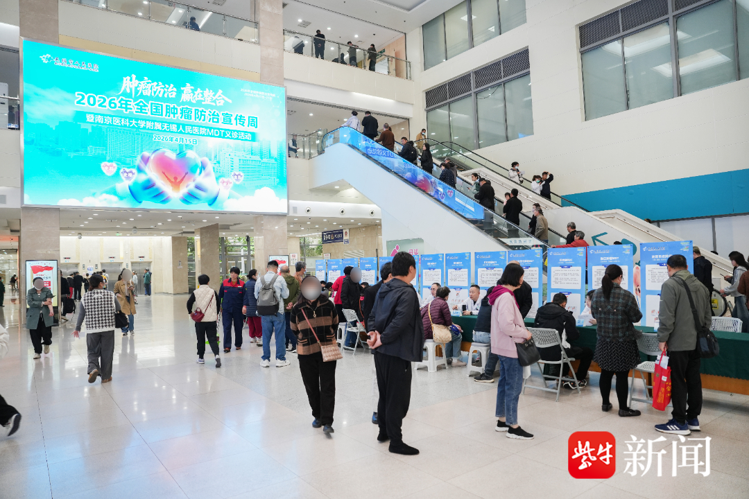 4月15日,2026年全国肿瘤防治宣传周正式启动,今年活动主题为“肿瘤防治 赢在整合”。当天上午,南京医科大学附属无锡人民医院在门诊大厅举办肿瘤多学科诊疗(MDT)义诊活动。医院13个肿瘤MDT团队专家现场出诊,为市民提供一站式、多学科的专业健康服务。