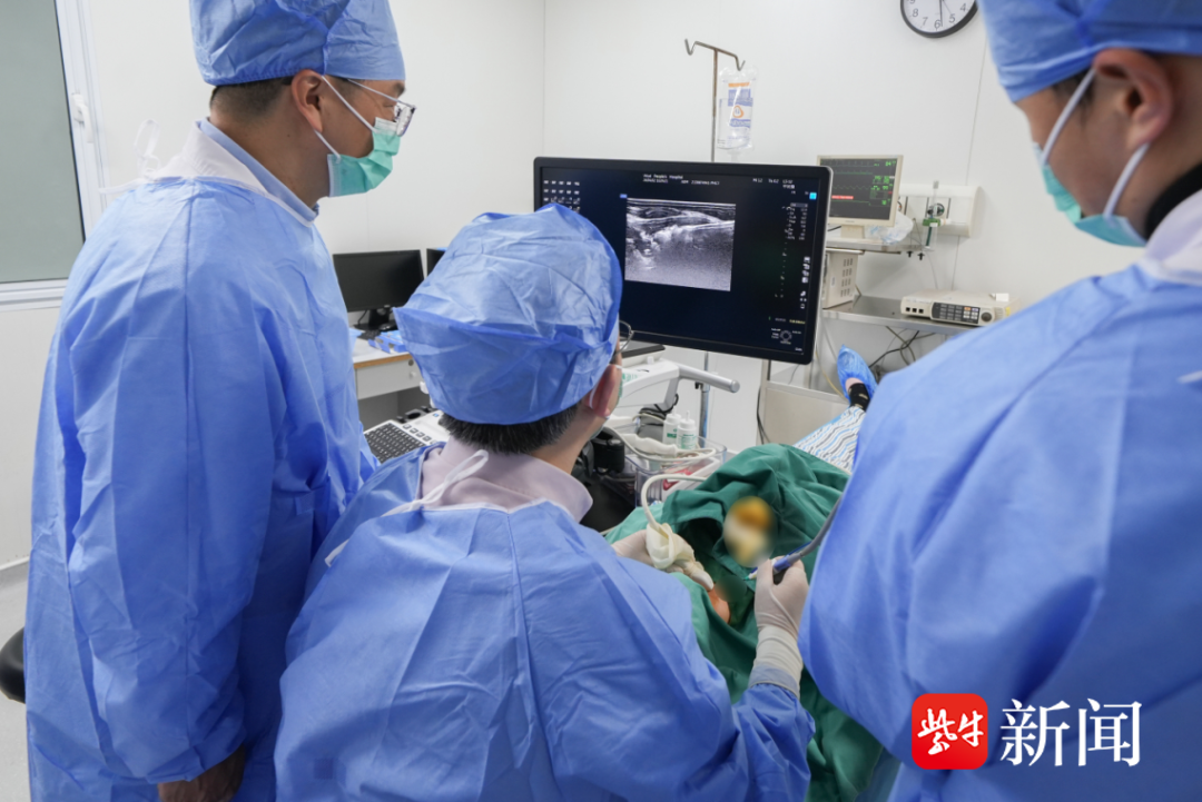 躺在操作台上的薛女士(化名)意识清醒,正和医生交流着。她没有想到,短短4分钟里,医生用一根直径仅2毫米的消融针成功解决了她脖子里的两个“麻烦”——甲状旁腺腺瘤和甲状腺结节。