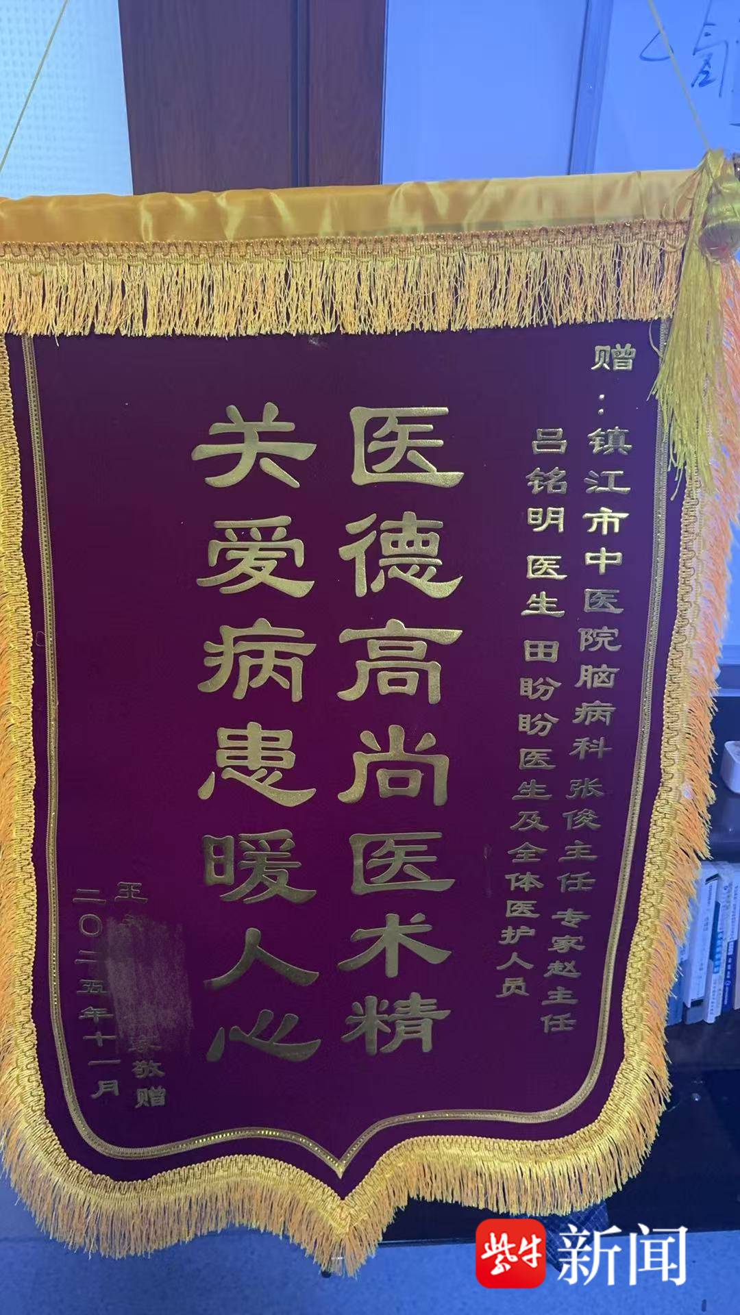 扬子晚报网11月27日讯(通讯员 徐悦涛 张俊 记者 万凌云 姜天圣)近日,镇江市中医院脑病科上演了温馨一幕。出院的急性缺血性卒中患者王先生(化名)及其家属,将一面写有“医德高尚医术精,关爱病患暖人心”的锦旗,亲手送到了脑病科张俊主任及其团队手中,以此表达对科室全体医护人员精心医疗及护理的由衷感谢。这面栩栩生辉的锦旗,不仅承载着患者全家的感激之情,更是对我院脑病科在急性脑卒中救治领域精湛技术与人文关怀的充分肯定。