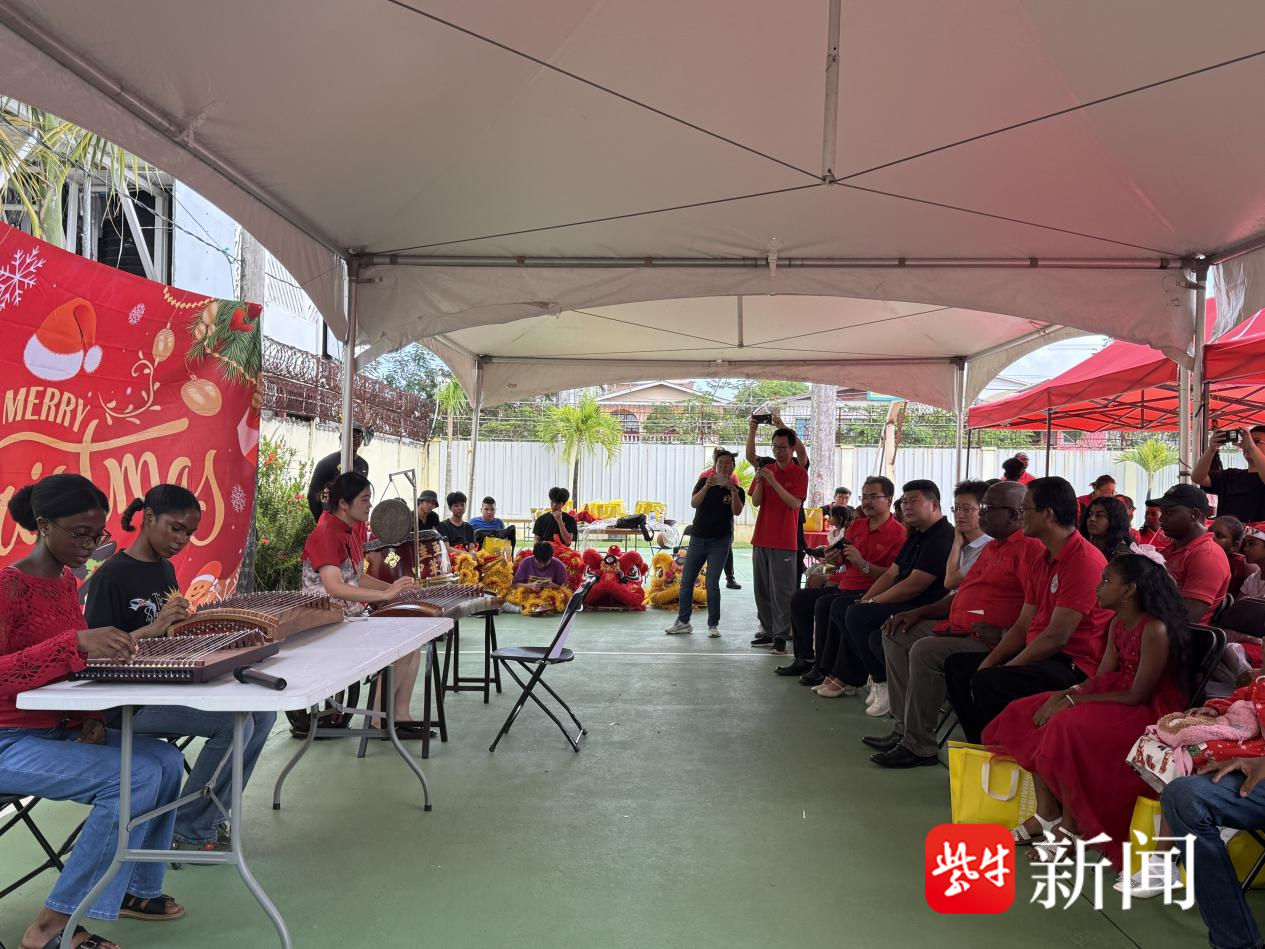 活动现场洋溢着欢乐祥和的气氛。中国医疗队妇产科医生李妍雨与两名圭亚那学生共同演绎了古筝曲目《万疆》,悠扬的琴声跨越语言障碍,奏响了中圭文化交流的美妙乐章。医疗队厨师陈振伟更是用心准备,在有限的食材条件下,精心制作了多种中国特色小点心,让来宾们在品尝传统美食的同时,感受到中国饮食文化的独特魅力。