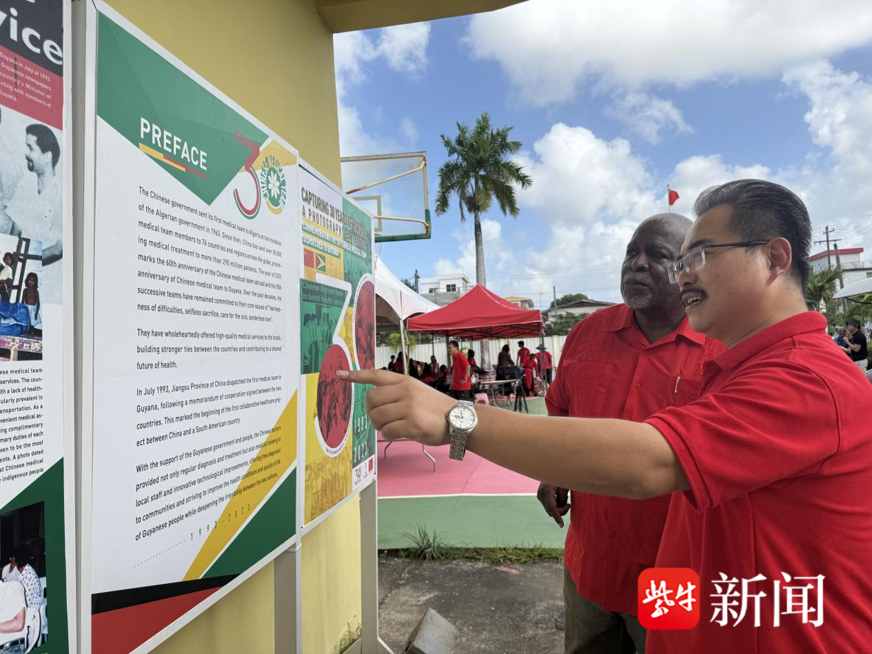 活动最后,医疗队队长李欢送陪同嘉宾参观了援圭医疗队历史展板。一幅幅照片、一个个故事,生动记录了中国医疗队多年来在圭亚那播撒的健康与友谊的种子。这场别开生面的文化互动活动,通过展示中国古典乐器、品尝传统美食等多种形式,不仅让当地民众近距离感受到中国医疗队的专业与爱心,更为中圭两国的友谊篇章增添了温馨的一页。孩子们的笑脸,成为这个美好日子最动人的风景。