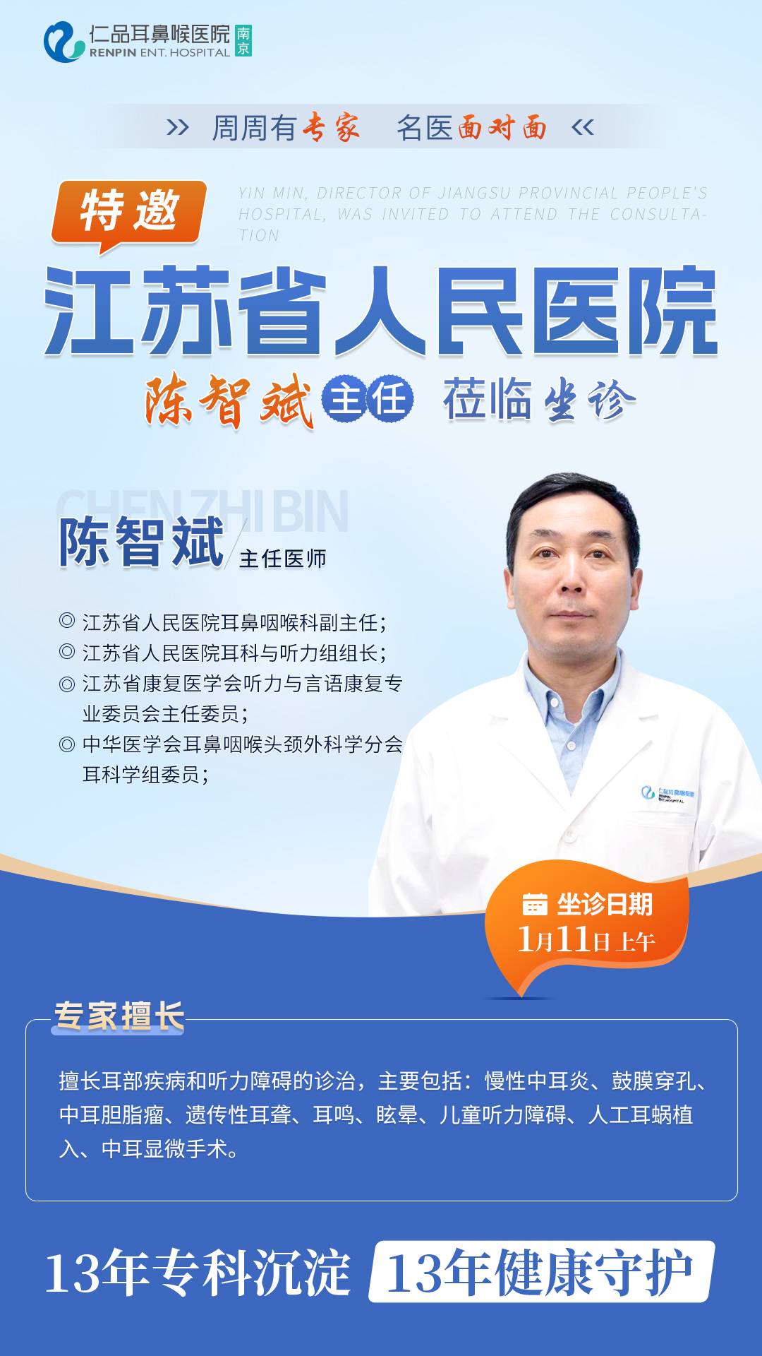 专家建议,日常生活中要注意预防感冒,避免用力擤鼻涕,游泳或洗澡时防止耳道进水,不要频繁挖耳朵。一旦出现以上耳部不适症状时,切勿拖延或自行用药,及时寻求专业诊疗,不仅能有效缓解症状,还能避免并发症的发生,保护听力健康。1月11日(周日)上午,陈智斌主任将在南京仁品耳鼻喉专科医院坐诊,为耳部不适人群看诊解答,有需要的患者可致电官方电话025—57888888电话预约或现场挂号。