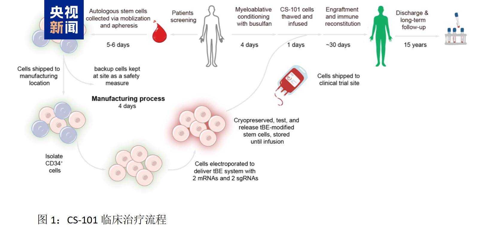研究中未发现基因组大片段缺失、染色体突变、脱靶突变等情况。截至目前,这项疗法已让近20名β-地中海贫血和镰刀型细胞贫血病患者实现治愈,所有患者均迅速摆脱输血依赖,并长期维持血红蛋白高水平表达。