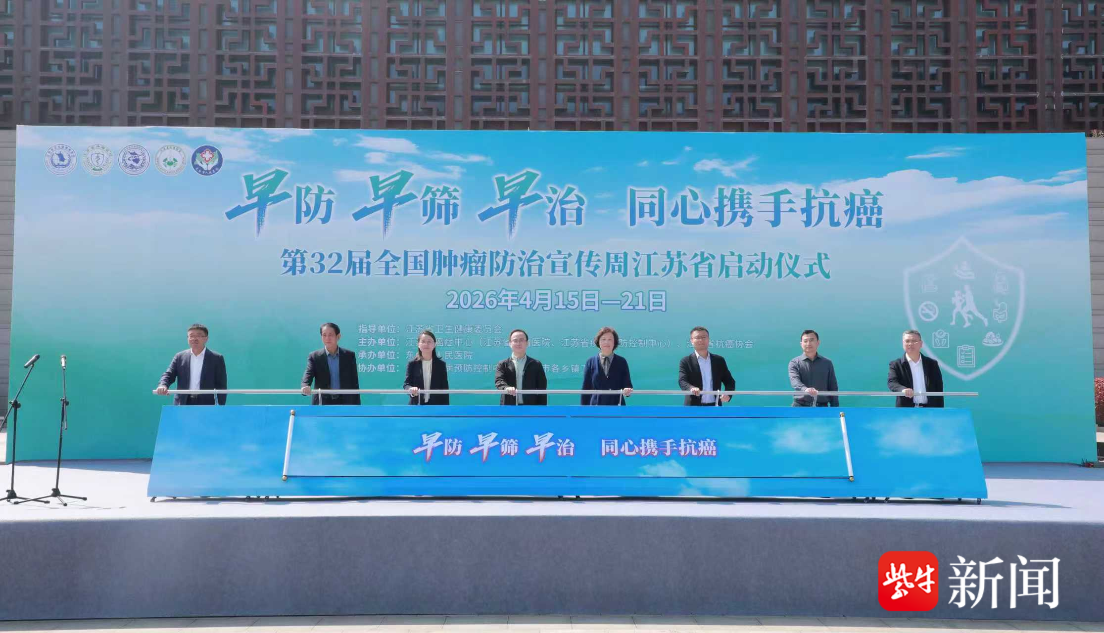 2026年4月15日—21日是第32个全国肿瘤防治宣传周。 为积极响应国家号召,落实《健康中国行动—癌症防治行动实施方案(2023—2030年)》,在省卫生健康委的指导下,由省癌症中心及省抗癌协会联合主办的2026年全国肿瘤防治宣传周在东台启动,东台市人民医院承办本次启动仪式。