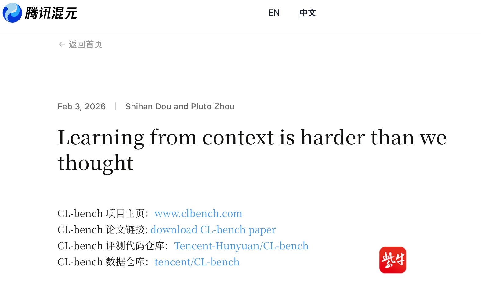 “即使是如今最强的语言模型,在上下文的利用方面仍然做得不好,甚至可以说是还不会利用上下文,从上下文中学习。”2月3日,腾讯混元官网技术博客(Tencent HY Research)发表了一篇名为《从上下文中学习,远比我们想象的要难》的文章,系统的介绍了腾讯混元团队联合复旦大学的一项新研究。