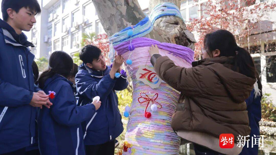 近日,南京两所中小学不约而同地开展了以树木为载体的校园文化实践活动。同学们用巧手为树木穿上“创意毛衣”,在劳动中融合美育、传承文化,为冬日校园增添了一道道温暖而亮丽的风景。