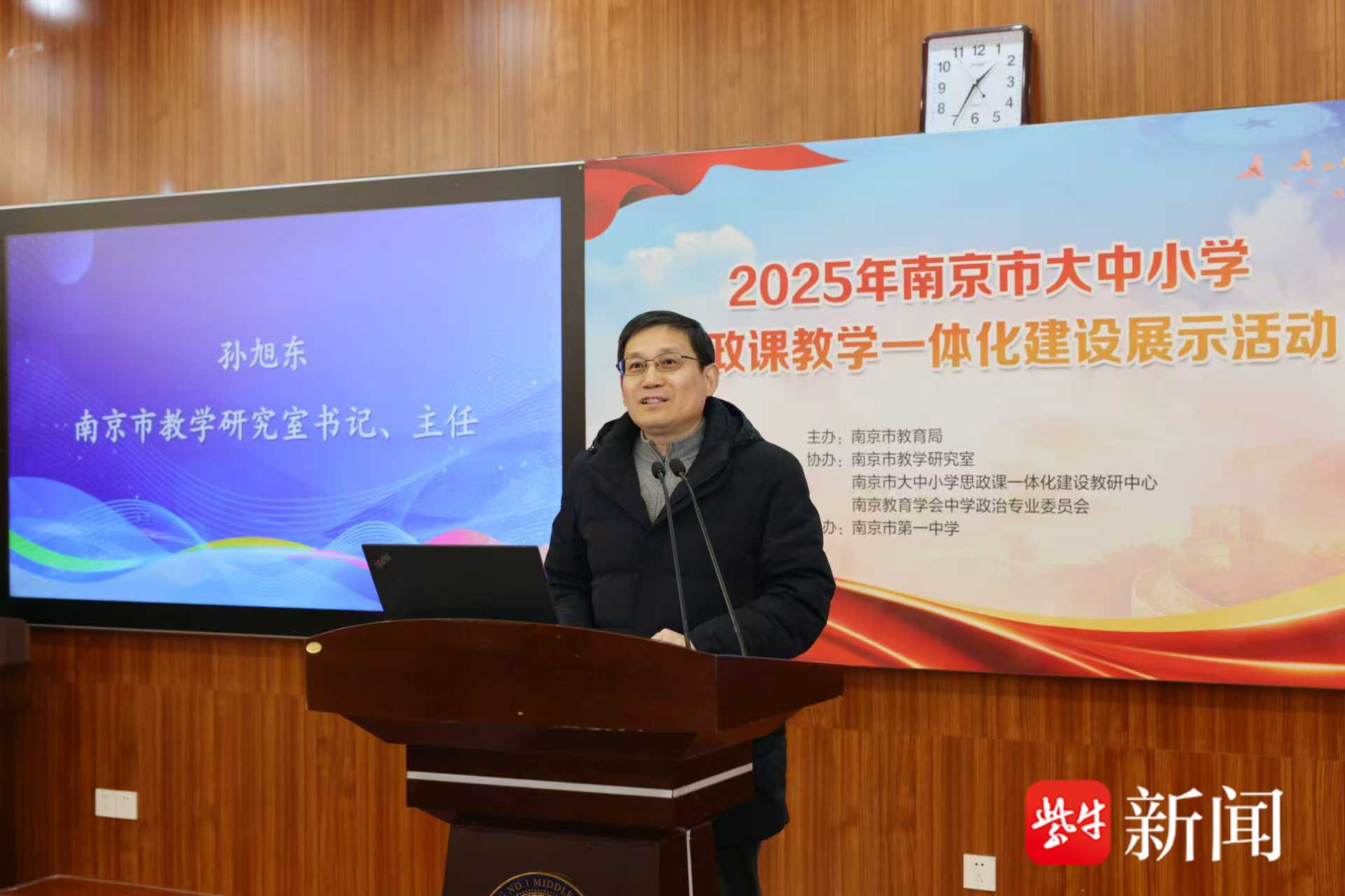 南京市教学研究室主任、书记孙旭东在致辞中指出,全市要着力加强思政引领力,强力提升思政课育人水平,合力加强大中小思政课一体化建设水平,并号召大家把二十届四中全会精神及时准确有效地转化为思政育人资源、转化为思政课堂质量、转化为学生可感可学可信可行的思想力量与行动能力。