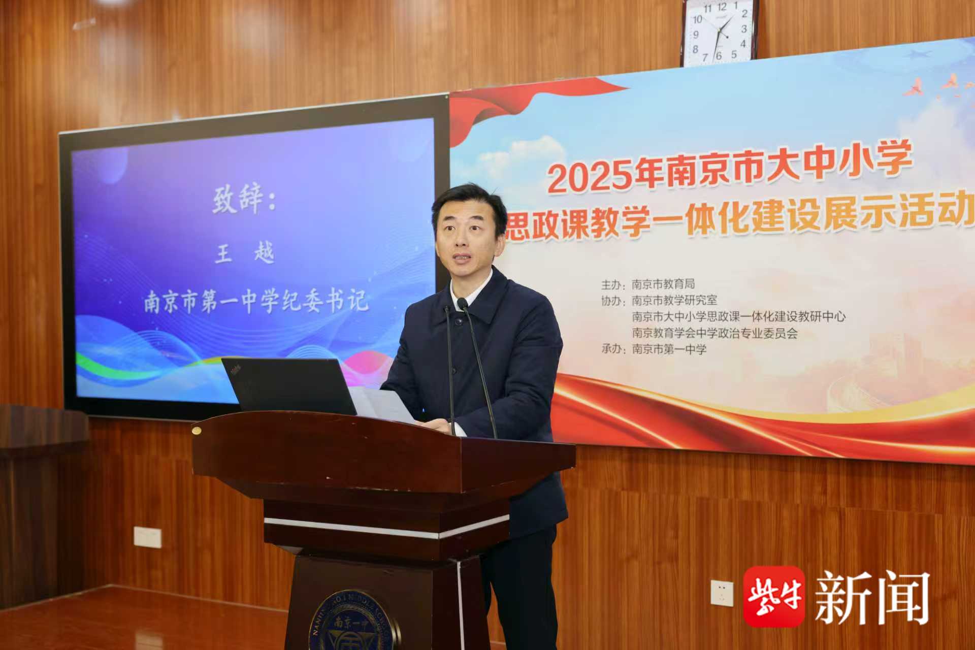 开幕式中,南京市第一中学纪委书记王越介绍了学校在加强思政引领力和思政教育、积极探索大中小学思政课一体化建设实践的探索。