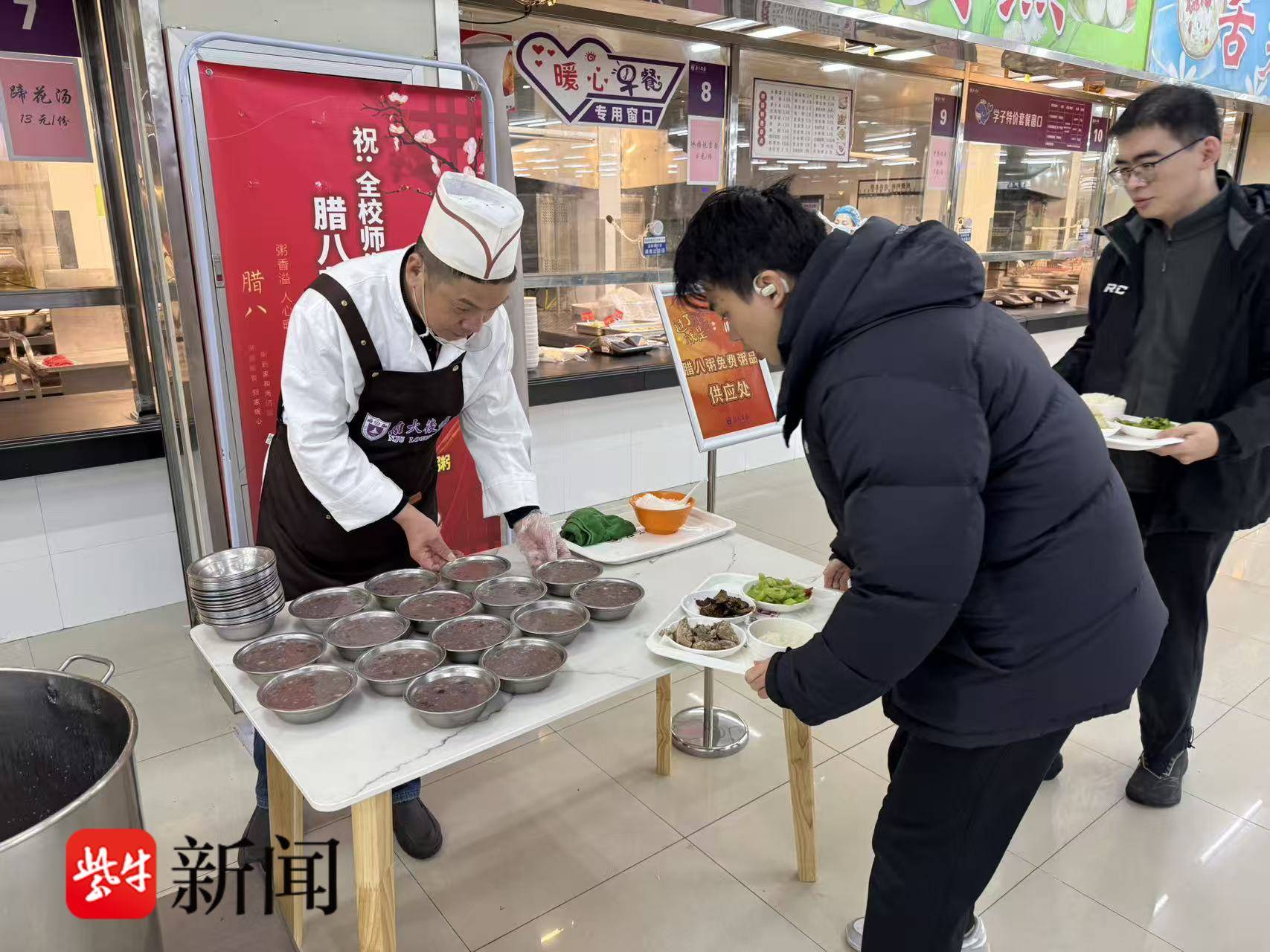 腊八节当天,食堂给留校师生提供了免费腊八粥