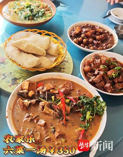 在桦墅村,人气火爆的不仅有休闲小店,地道实在的农家菜更是圈粉无数。记者走进伴山居农家乐后厨看到,一盆盆新鲜的食材码放整齐,全部都是当天精心准备的。菜品价格也非常实惠,一大盆鱼头炖豆腐68元,青菜油渣28元、小茨菇烧肉58元、小现炕的小脚馒头2元一个。