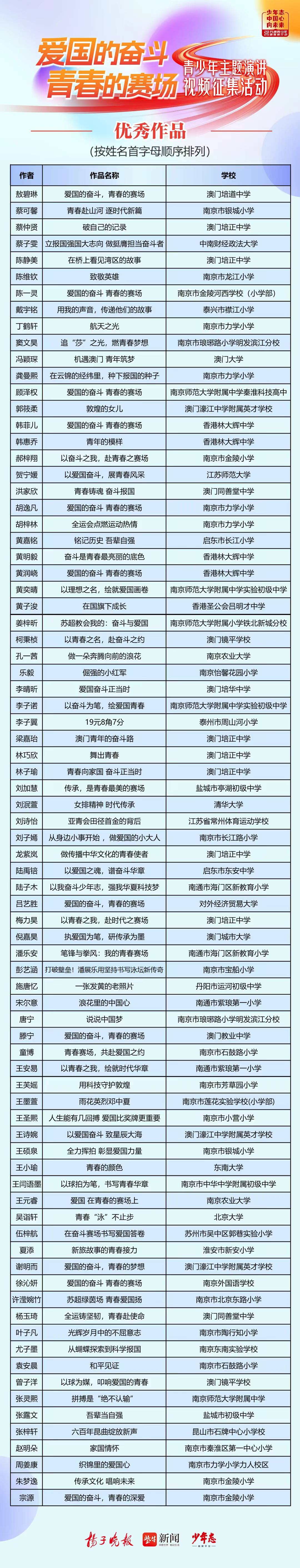 作为“少年志·中国心·向未来”2025苏澳青少年融媒体行动的重点内容之一,“爱国的奋斗 青春的赛场”主题演讲视频征集活动正式揭晓获奖名单。经过评议,最后选出80个优秀作品,30个网络人气作品。苏港澳青少年以青春视角讲述爱国奋斗故事,让跨越山海的精神共鸣在三地持续激荡。