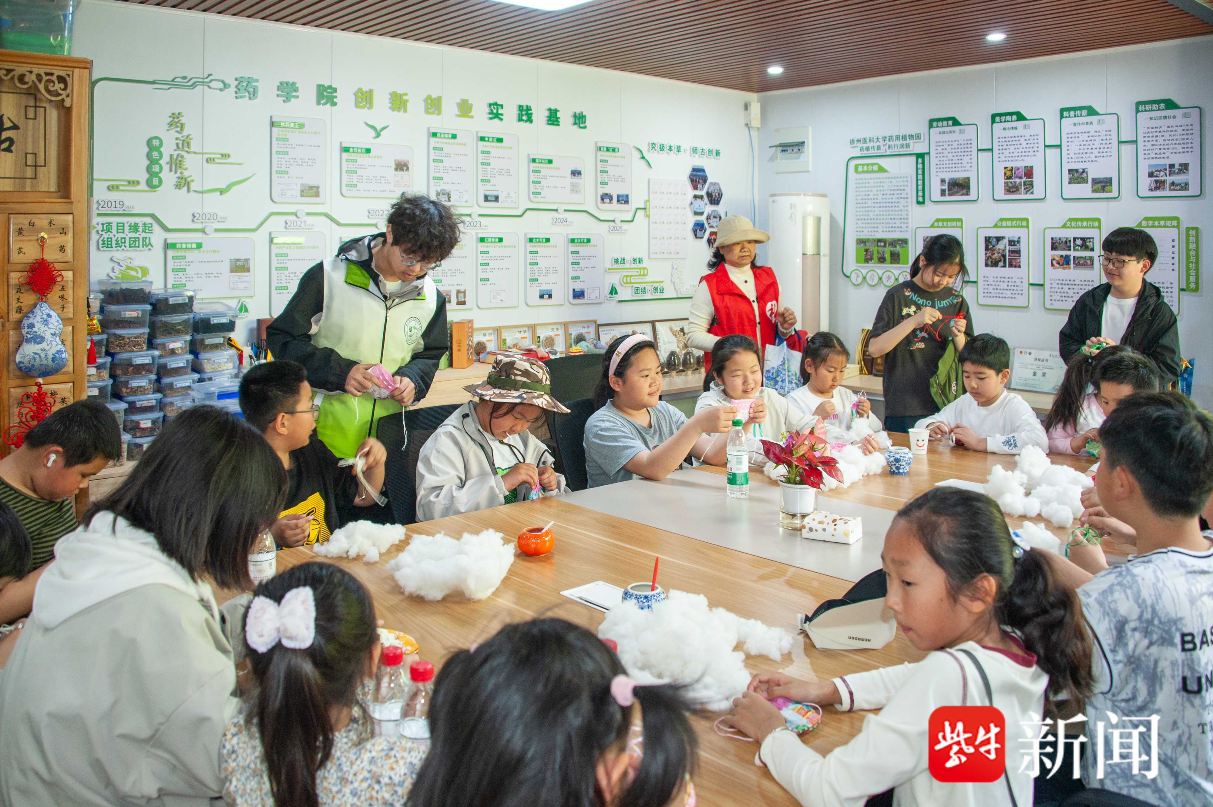 作为区域医学教育高地,徐州医科大学马克思主义学院立足“医学+思政”特色,将生命教育、医德文化、红医精神、中医药文化转化为一体化育人资源,打造“场馆实景+故事浸润+动手实践”的沉浸式课堂,让同学们“听得懂、看得见、摸得着、记得住”。4月26日,来自徐州市云龙区骆驼山街道未成年保护工作站40多名小学生及家长,在马克思主义学院教师和大学生志愿者的陪伴下,开启了一场名为“探秘生命密码,播种科学梦想”的奇妙研学之旅。