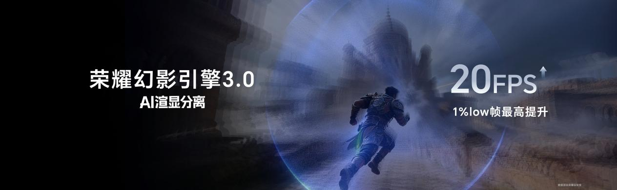 与此同时,荣耀WIN全系搭载荣耀幻影引擎3.0,AI渲显分离技术进一步升级。通过AI技术,实现对卡顿帧的精准预测和渲染优化,1%Low帧至高提升20FPS,带来更稳定的帧率、更丝滑的触控。