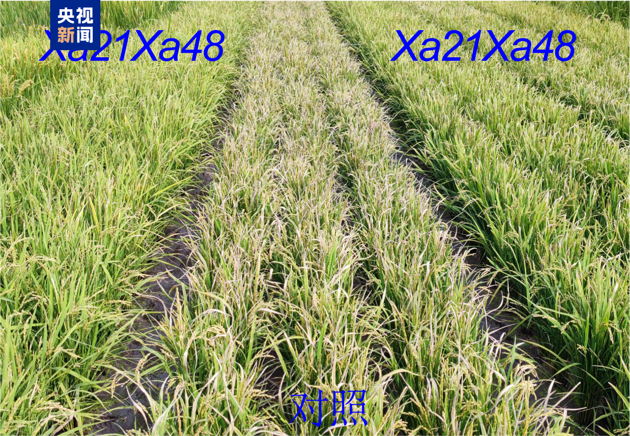 △Xa21与Xa48两种抗病基因结合的水稻与白叶枯病水稻对比图