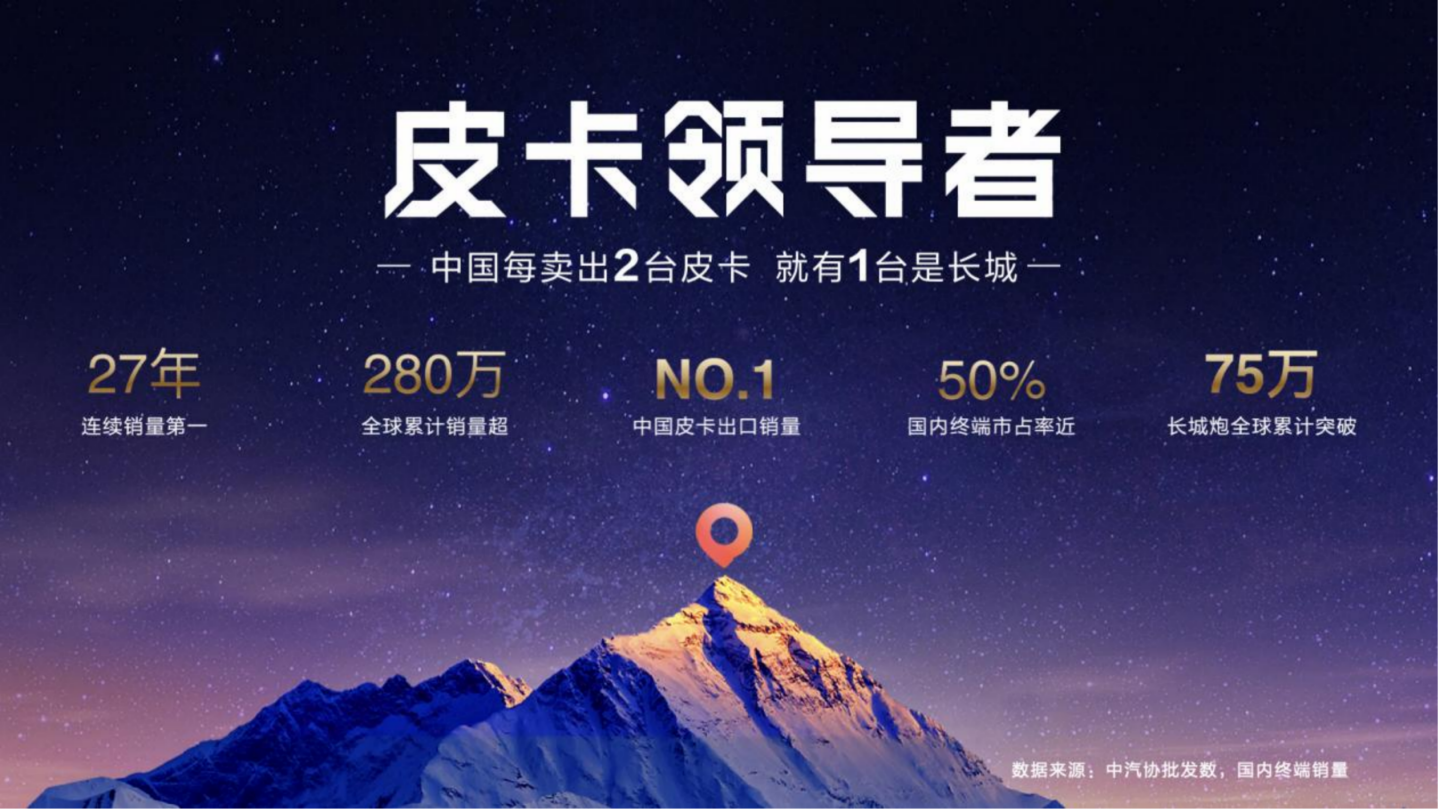 2019年长城炮诞生,开创乘用皮卡新品类,长城炮六周年全球累计销量突破75万辆,累计60个月销量过万,蝉联中国皮卡销量冠军,足迹遍布60余国。2.4T长城炮上市1年多,销量超3万辆,位居高规柴油动力销量第一。
