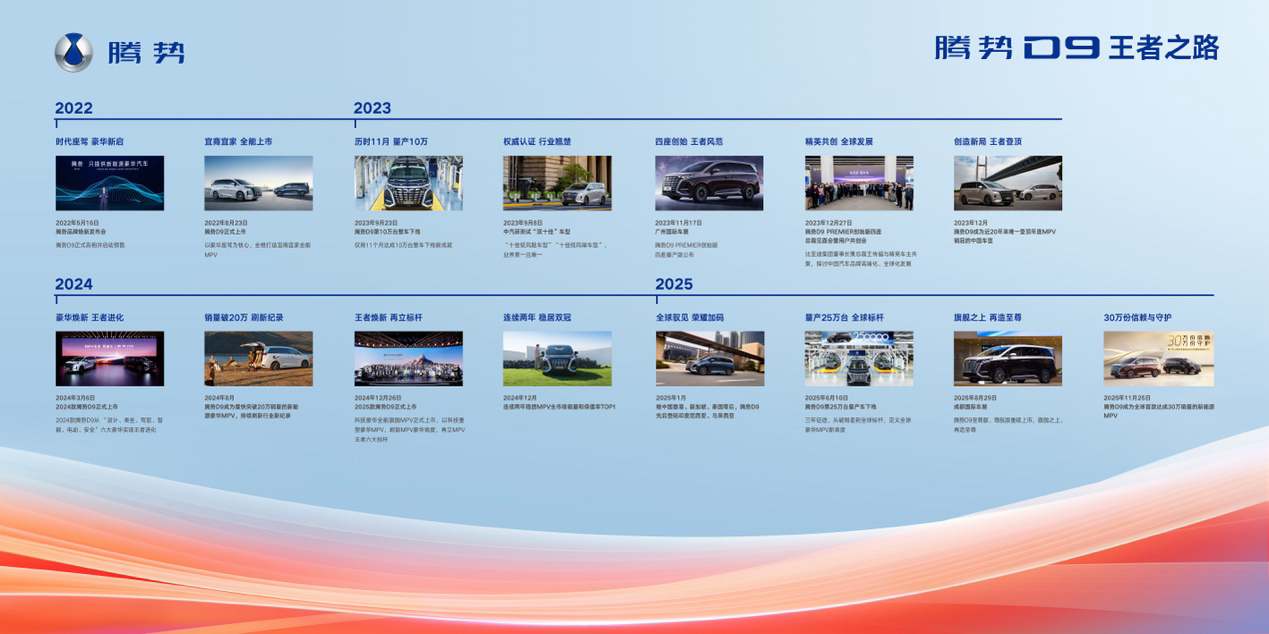 腾势D9的成功,是中国品牌创新发展之路的一个缩影。作为全球首款达成第30万辆交付的新能源MPV,腾势D9如今在更高的起点上持续突破。在不远的将来,MPV冠军腾势D9将持续获得精英圈层的认同,与每一位用户一起向着美好生活,腾势而上。