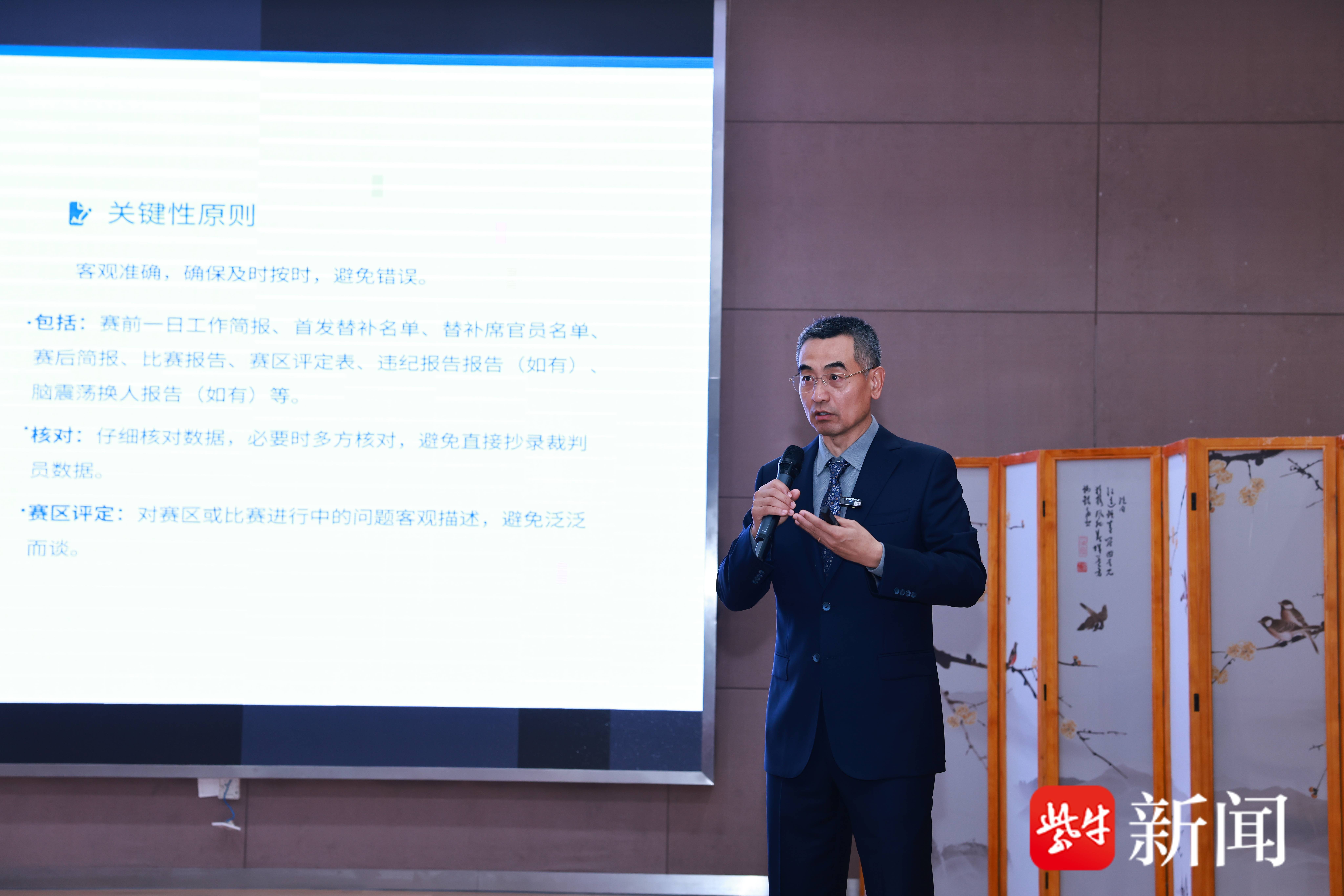 在前不久的江苏省足协2026年度比赛监督培训班暨竞赛工作会上,程一军作为资深讲师,为来自全省各地的学员分享了实践案例和经验总结。