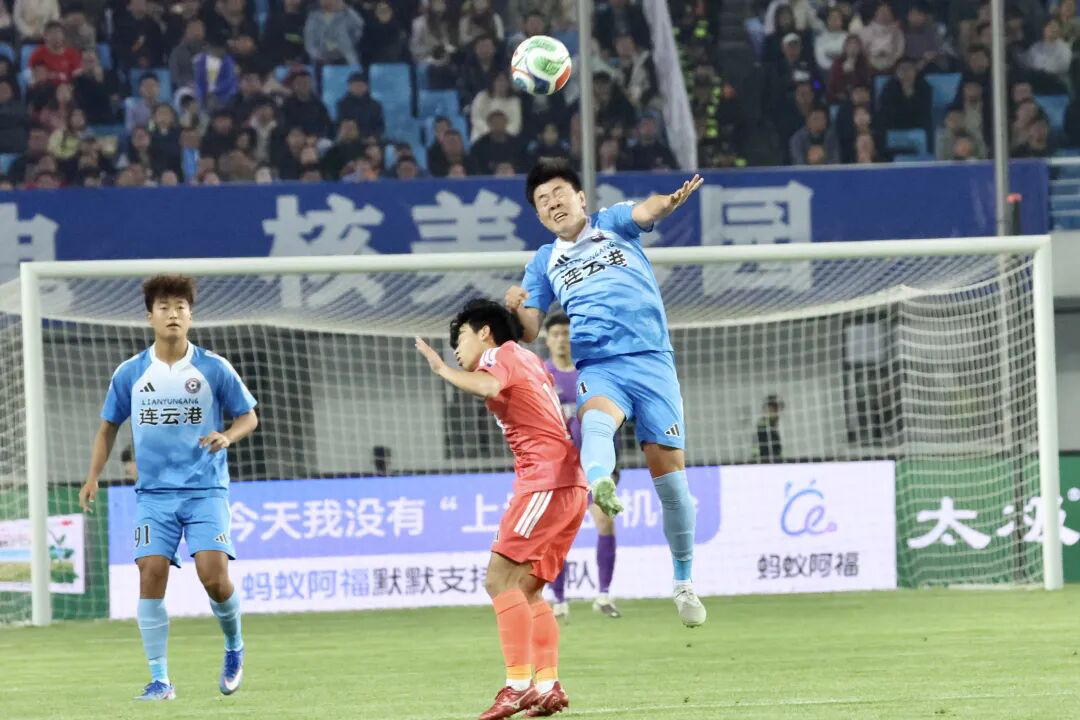 盐城的球迷全场接近100分钟始终保持着高昂的热情为自己的球队加油、呐喊。而落后的连云港队并未气馁,现场身着蓝色助威服的球迷始终呐喊助威,为球队注入不竭动力。第58分钟,连云港队拼得位置极佳的前场任意球,可惜射门未能命中目标。第60分钟,连云港门将李海涛果断冲出门线扑球,化解对方反击危机,展现出关键扑救能力。