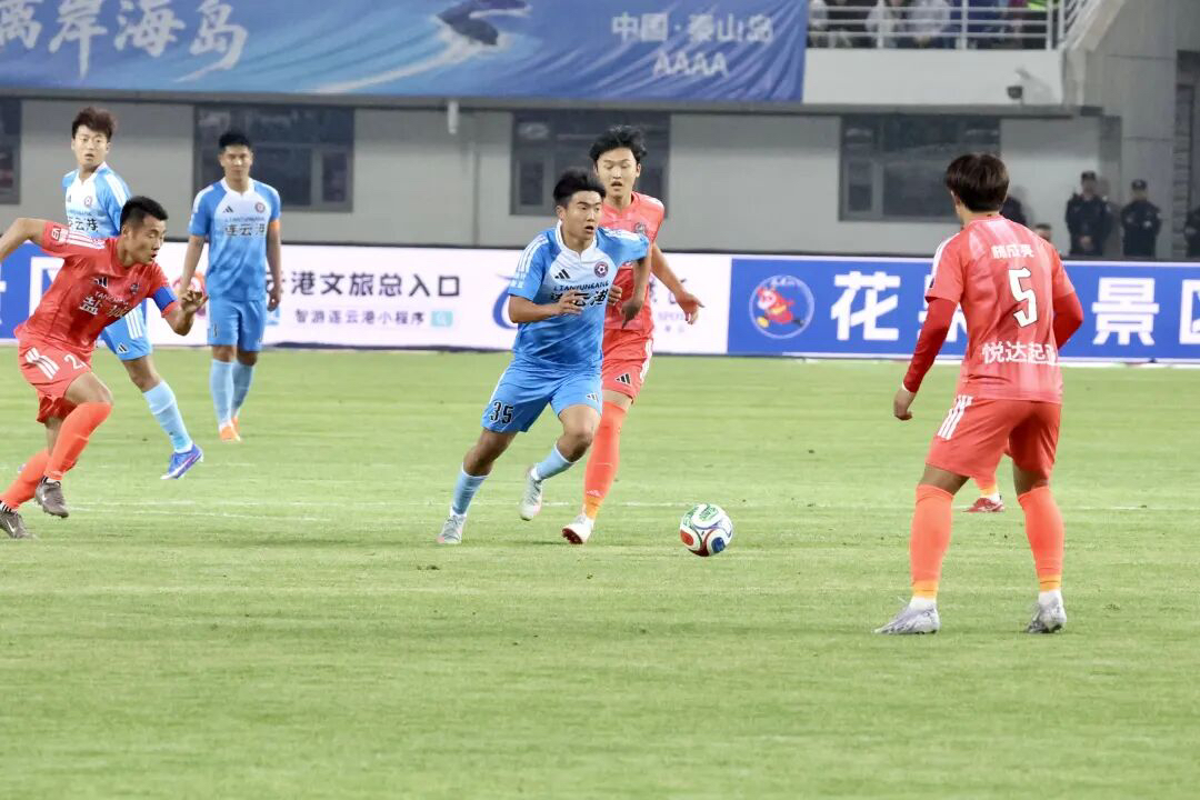 上半场,连云港队摆出极具攻击性的3-4-3阵型,边路突破犀利,开场10分30秒便率先制造威胁打门,展现出强烈的主场抢分欲望;盐城队则以稳健的4-4-2阵型应对,凭借严密防守体系与快速反击寻觅战机,战术博弈从开场便全面展开。