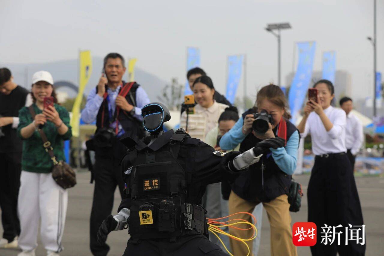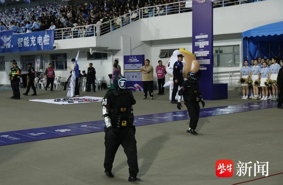 “苏超”竞逐新章,智慧安保升级。在体育中心入口处,今年新入列的警用机器人正一边自动巡逻,一边执行民警指令与球迷互动,引来众多群众拍照点赞。