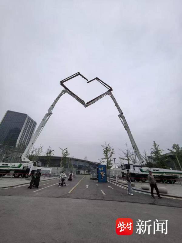 不过,作为硬核设备,徐工集团还是给球迷了准备了很多惊喜。在奥体中心西门广场,一辆徐工XDE130矿卡托起一只巨型发光足球,象征徐州队的有着“硬核”实力;在客队球迷通道,两辆新能源泵车将用灵活的臂架在空中“比心”,展示徐州队的姿态。2台徐工混凝土泵车长臂舒展,在高空勾勒出爱心图案,传递着徐州队的“硬核浪漫”;在南门广场,新一代徐工标载版纯电动牵引车组成美陈,开后窗视野,司机往后一瞥,全场景致富路尽收眼底,展示徐州队的“硬核服务”。