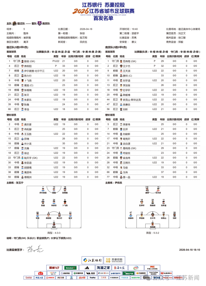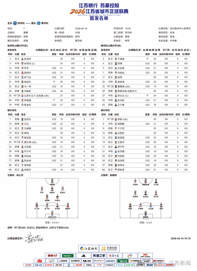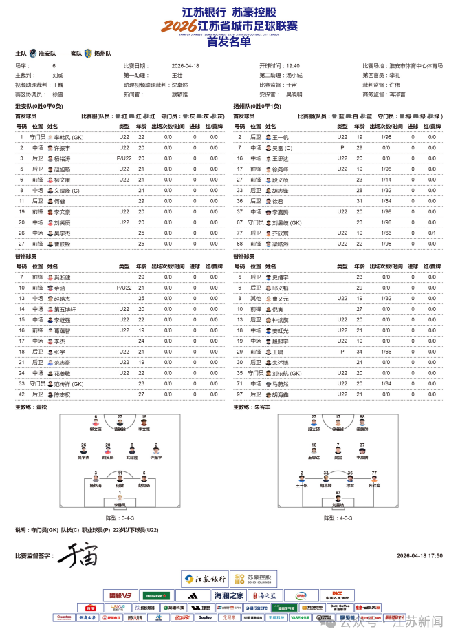 宿迁VS南京,淮安VS扬州,徐州VS泰州,首发名单来了!