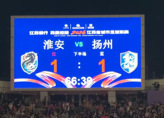 4月18日,2026江苏省城市足球联赛(以下简称“苏超”)第二周,淮安队主场对阵扬州队的比赛中,两队各获得一粒点球,最终1:1战平。