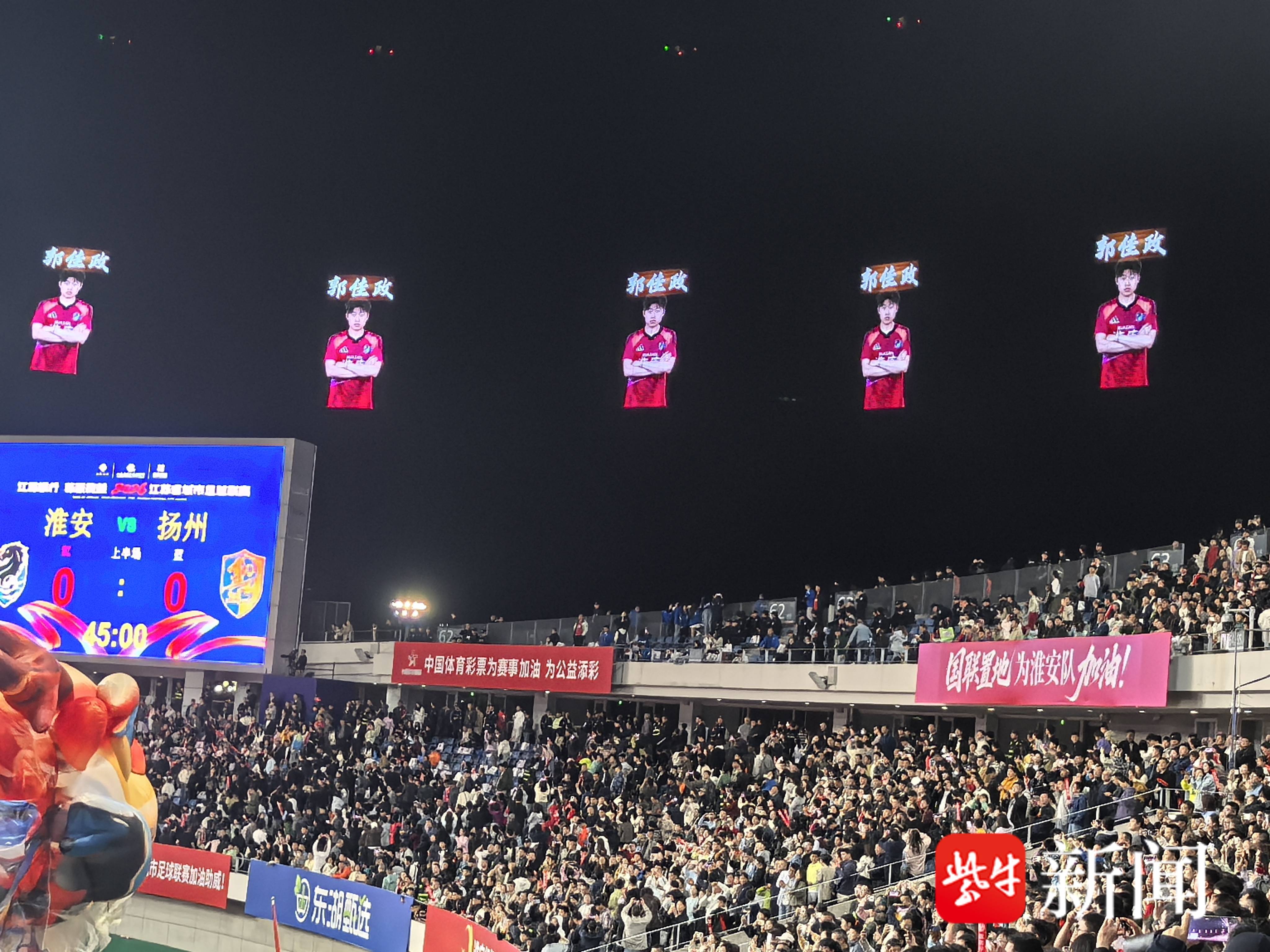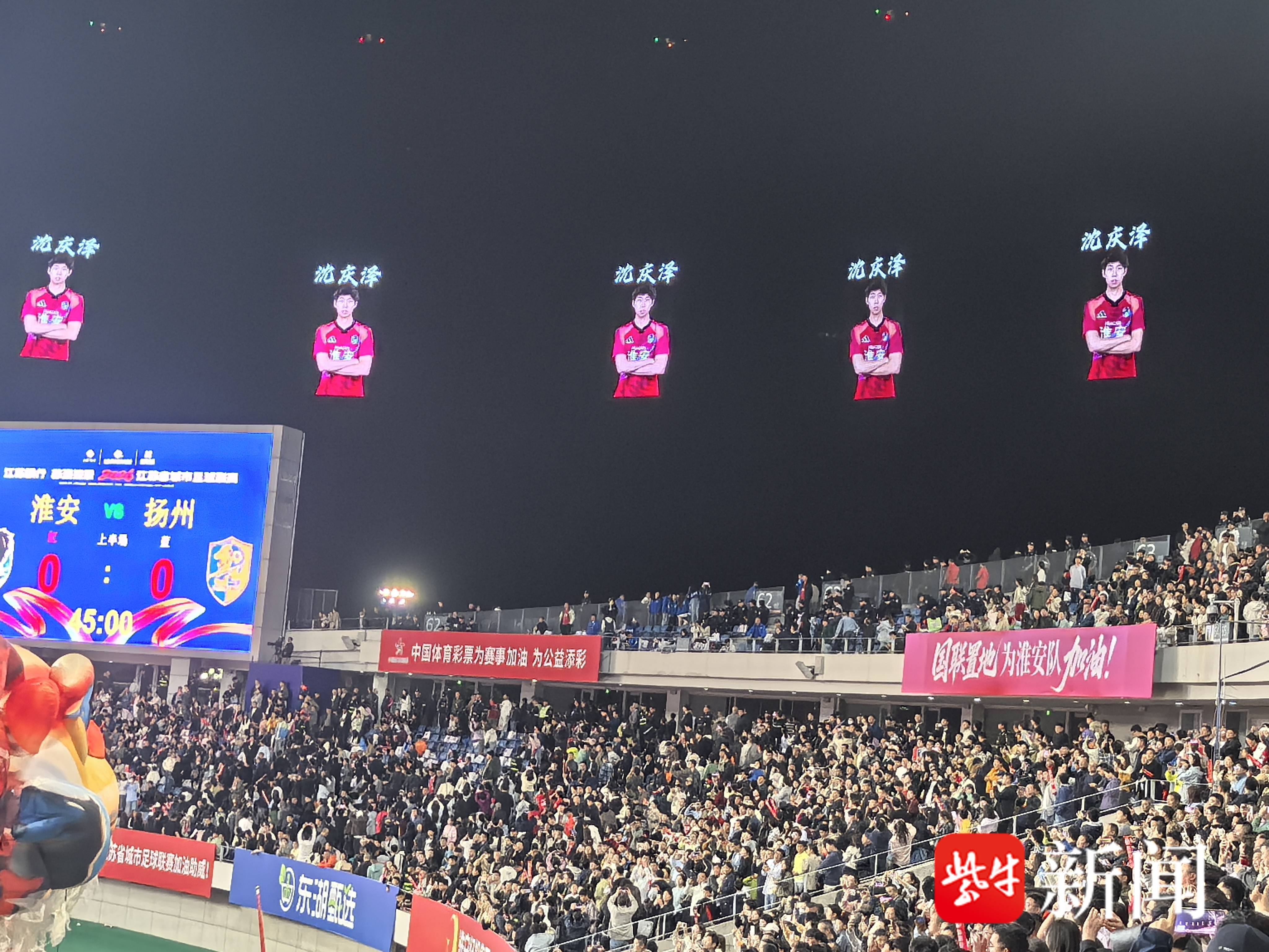 视频|“苏超”淮安主场:全息纱幕打造科幻球员出场