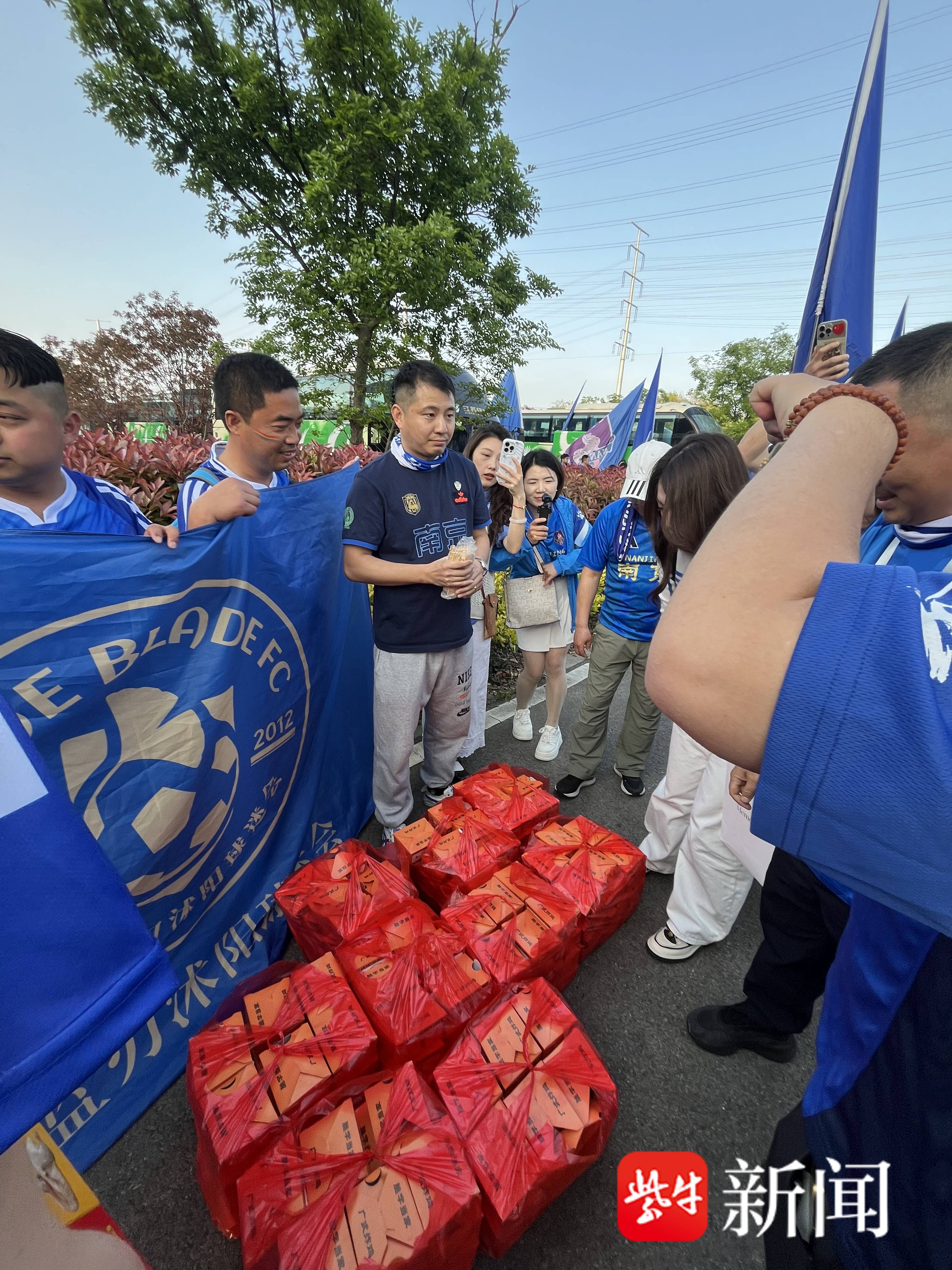 “虞姬”组团迎接 礼物相互赠送 宿迁、南京球迷赛前一家亲!