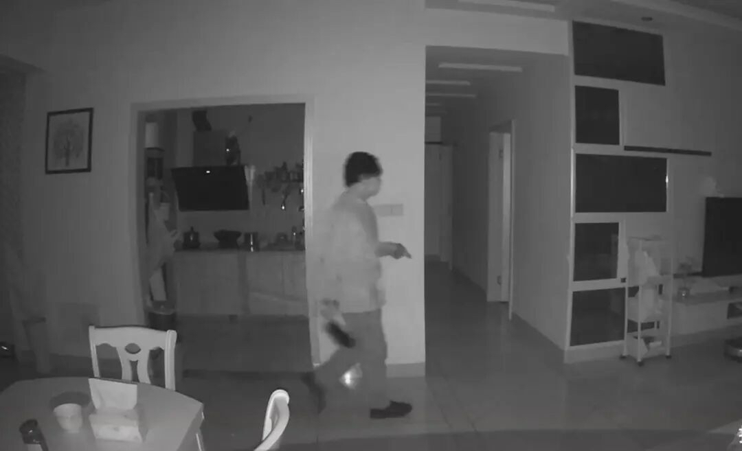 据网友发布的监控视频显示,11月19日晚8时40分,一名小偷从厨房走出,手里拿着手电筒四处观察,疑似察觉屋内有人后,随后从厨房内拿了一把菜刀走向卧室门口。在确定房内有人后,立即蹑手蹑脚地退回,将菜刀放下后离去。此事过去一小时后,一名身穿居家服的男子从房间内走出,开灯并用手机查看监控记录。