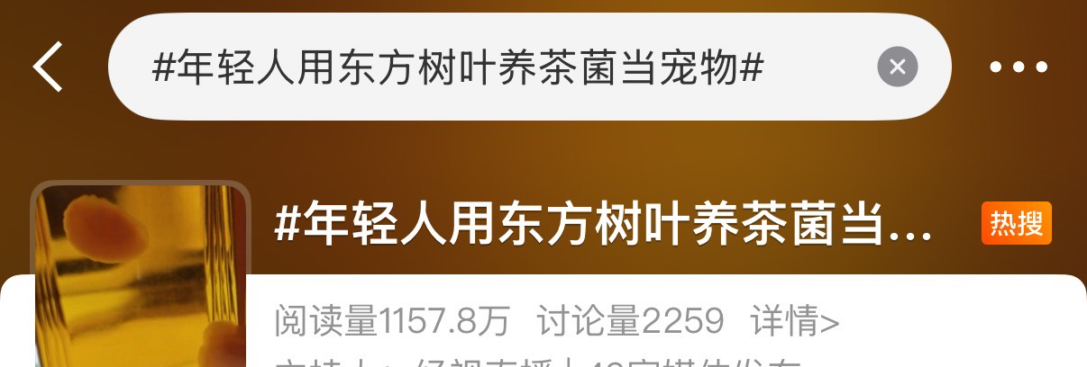 “这个世界就是一个巨大的培养皿”“东方树叶开盖后两个星期你就会得到一坨白色的小东西”——社交平台上,不少网友分享了自己的“茶菌饲养”经历,有人为菌团拍照记录生长过程,凭借其毛茸茸的外观,让人直呼可爱,将其当作特殊的“宠物”。这一行为迅速引发热议,小红书相关话题阅读量超百万,而这只是年轻人另类养宠的一个缩影。